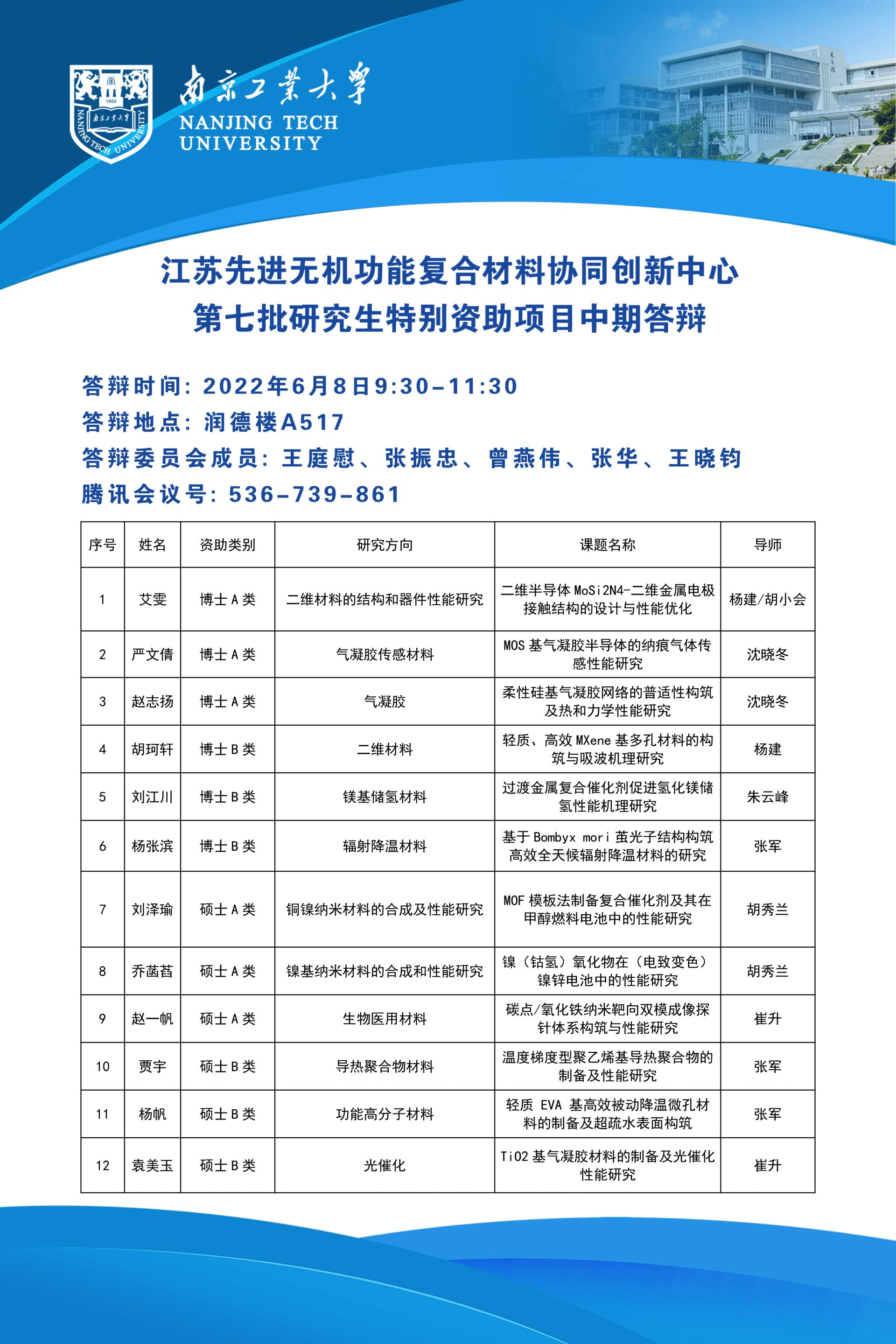 【研究生】江苏先进无机功能复合材料协同创新中心第七批研究生特别资助项目中期答辩