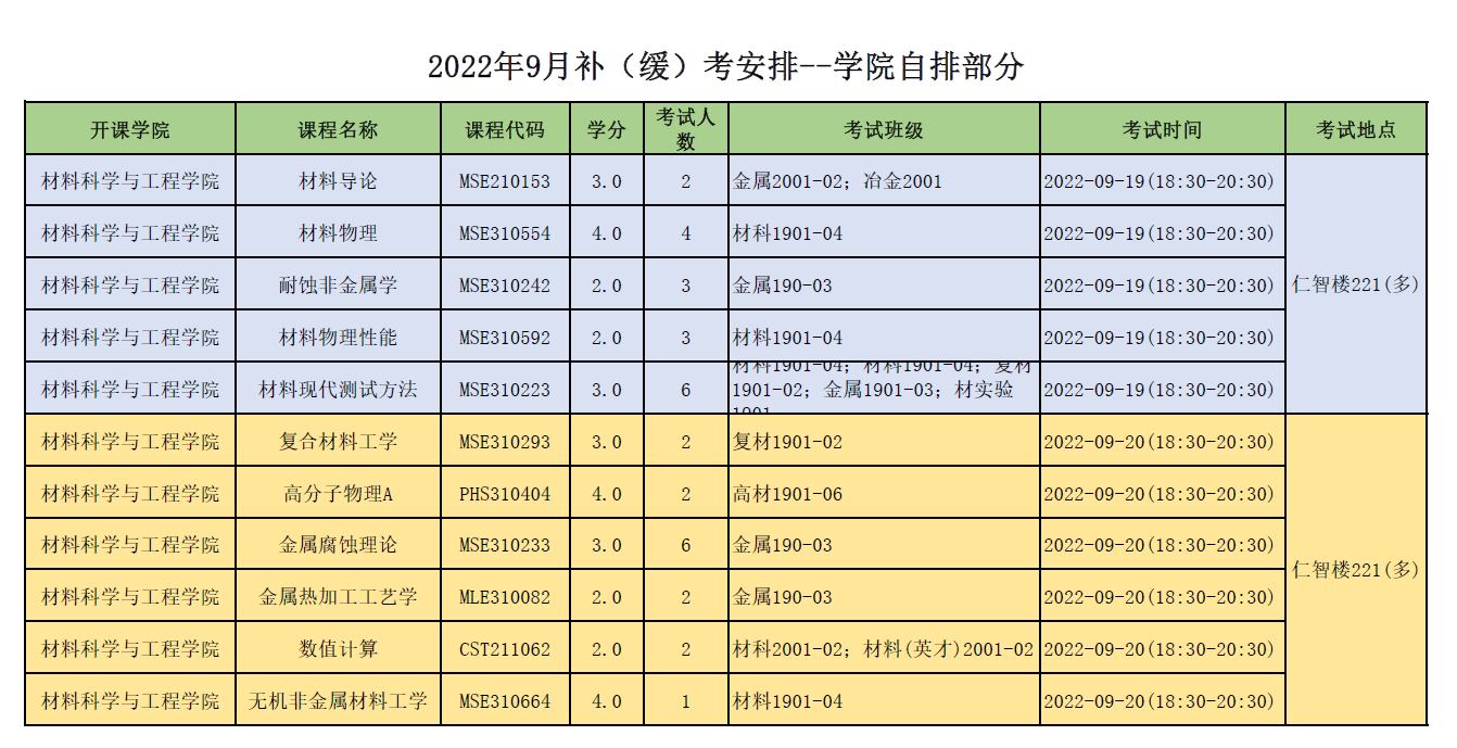 附件1:2022年9月补(缓)考安排表--教务处统排课程(员工版).xlsx