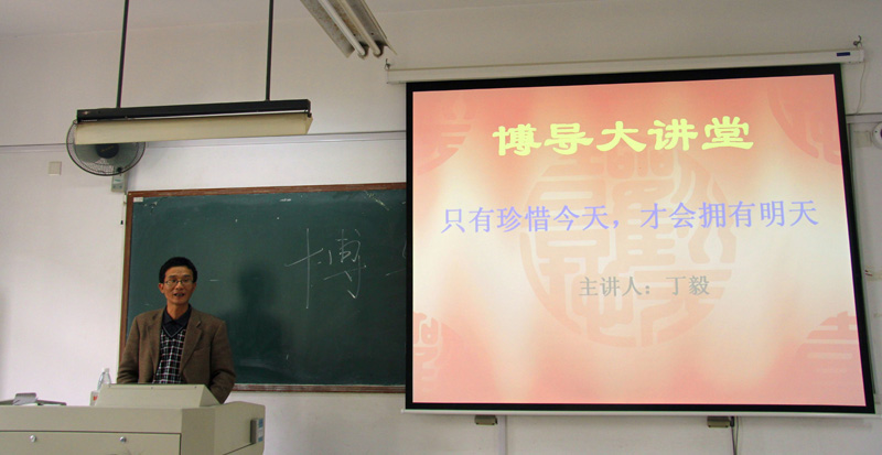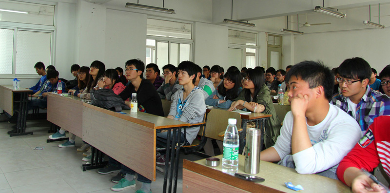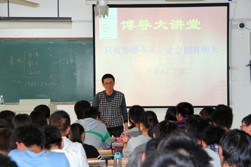 讲座刚开始,丁毅老师首先就自己的个人成长经历向同学们侃侃而谈。丁毅老师绘声绘色的叙述,使得教室里时不时地爆发出阵阵笑声,讲座的气氛很轻松活跃。当同学们渐渐沉浸于丁毅老师讲述其经历时,丁毅老师的一句“我所经历的昨天,就是你们所经历的今天”一时间让同学们陷入深思。接着,丁毅老师又从他对专业的感情变化向同学们展开了详细的叙述。从开始不了解专业、对专业抱有很高的期望,到了解专业后对专业的失望,再到重拾对自己专业的希望,丁毅老师以自己的切身体会告诉同学们“既然来到这里,选择了这个专业,那就爱这个专业。只有你爱它,它才能给你想要的一切”。最后,丁毅老师又以一瓶矿泉水为喻,强调了专业素质所包含的三个要素:知识、能力和方法以及这三个要素的重要性。讲座之后,同学们又与丁毅老师进行了专业知识上的交流。