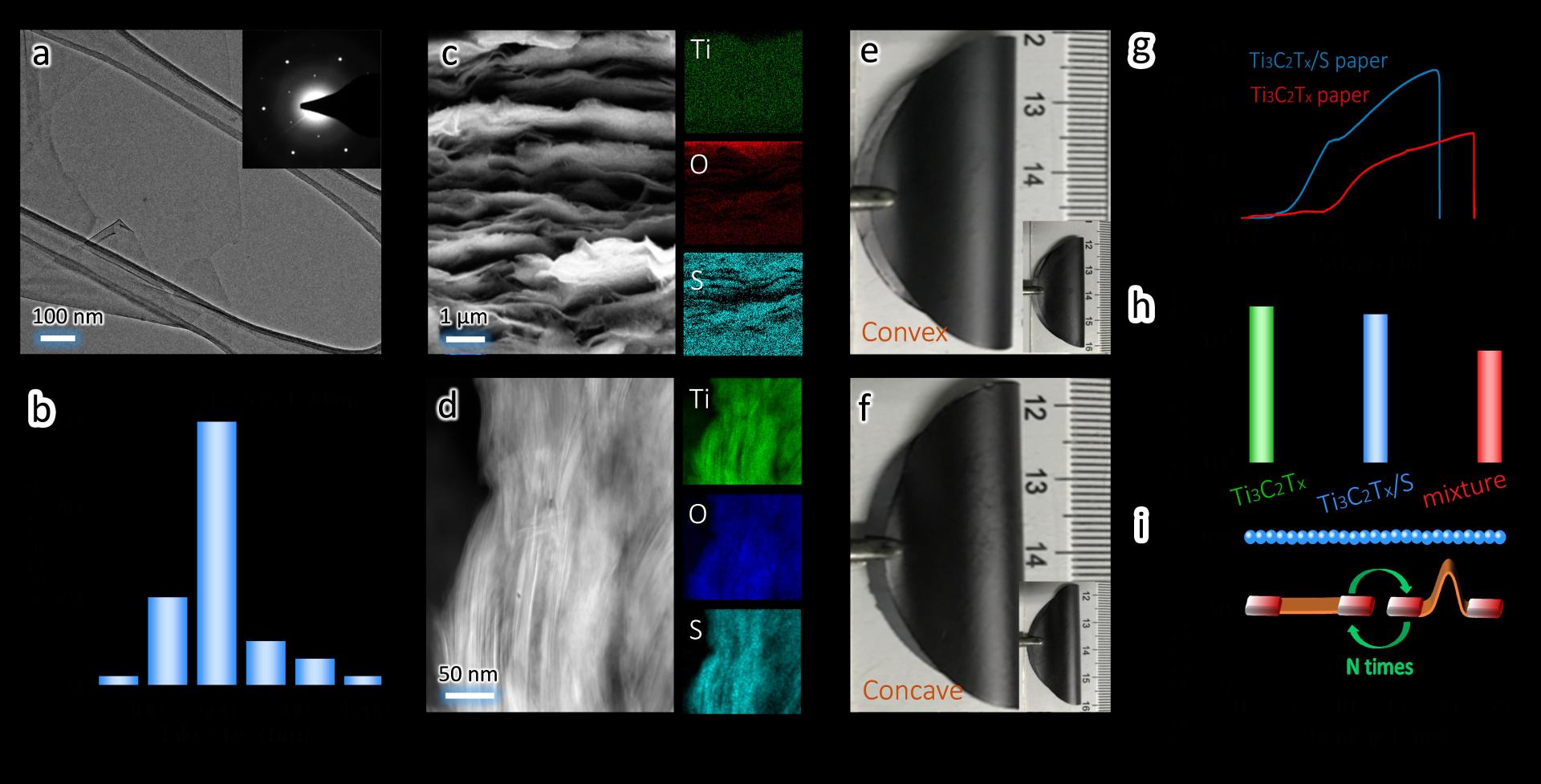 图2. Ti3C2Tx/S柔性导电纸的显微结构及表征