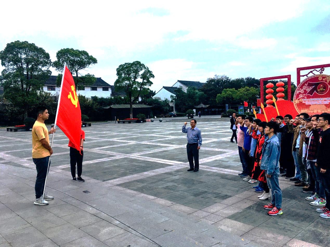 12日,党员们乘车前往江阴革命烈士纪念馆和渡江战役纪念馆,革命烈士纪念馆内陈列着727位烈士的英雄事迹,大量史料的展出,每一位烈士的英雄事迹让党员们深受感动;渡江战役纪念馆展现了百万雄师过大江的壮阔场面,让每一位党员深切感受到那段惊天动地的战争,感受到革命先辈用鲜血铸就的渡江战役精神。随后,党员们来到沙家浜,在党旗下重温入党誓言,每一位党员举起右手,回顾入党时激动的心情,并不断鞭策自己不懈努力,为党的旗帜增添光彩。