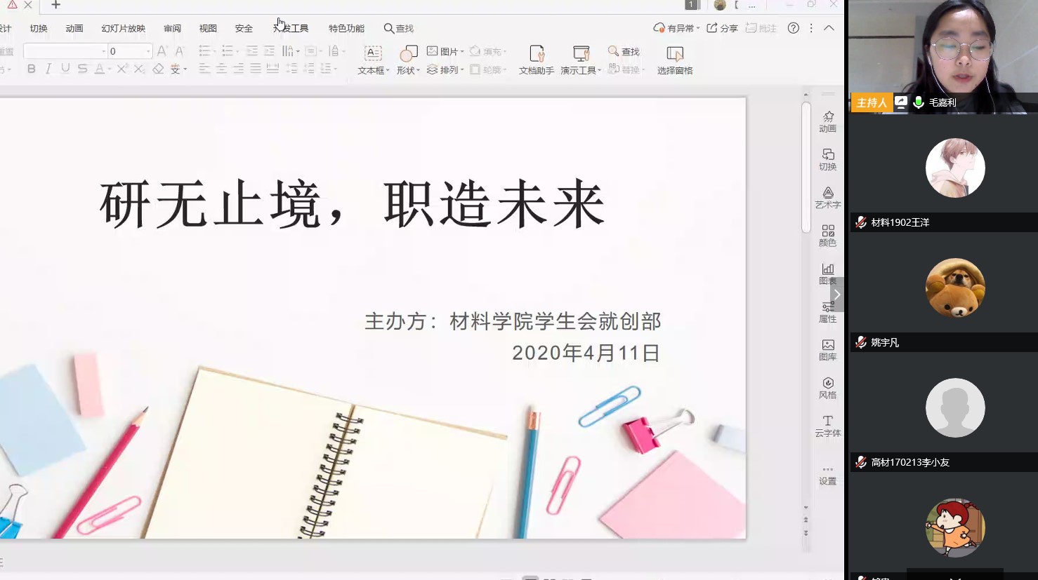 本次考研经验线上分享会,让同学们对考研复习方案、择校等方面有了进一步的了解,希望全体意向考研的同学们努力拼搏,祝愿同学们都能够考取理想的院校!