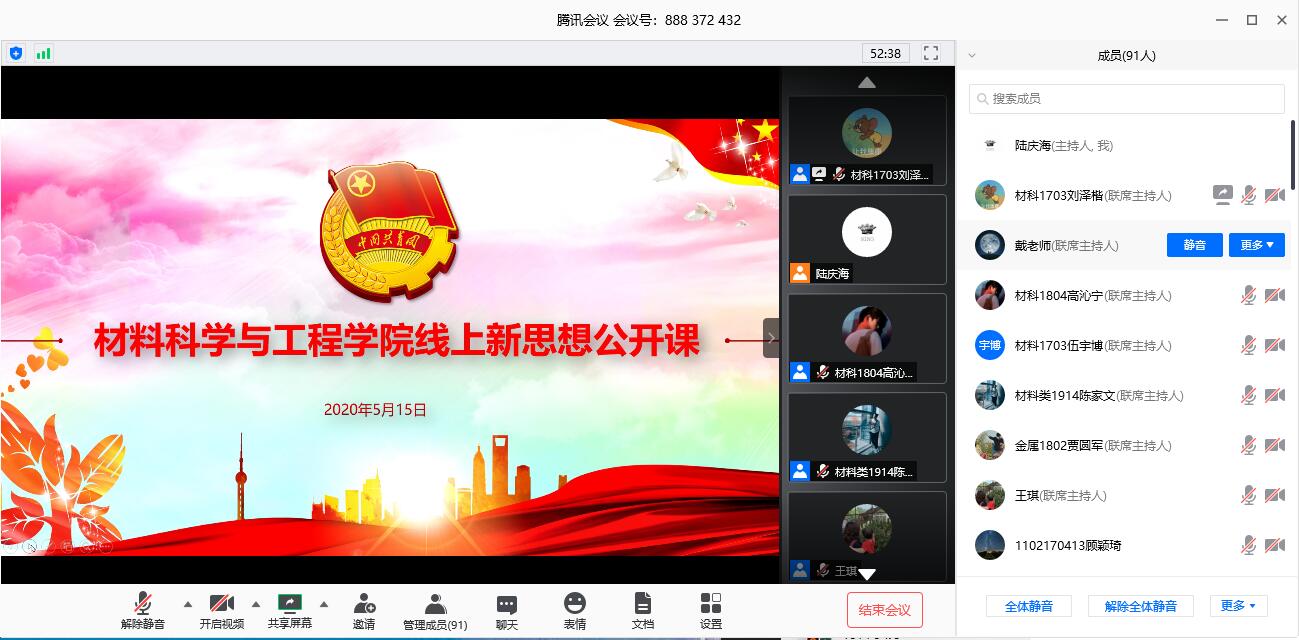 5月15日下午,mk体育团委为凝聚青年力量,注重青年思想培养,举办了线上新思想公开课活动。团委书记戴惠、副书记王琪和陆庆海、全体团总支成员、全体团支书和青年团员参加了此次线上公开课。