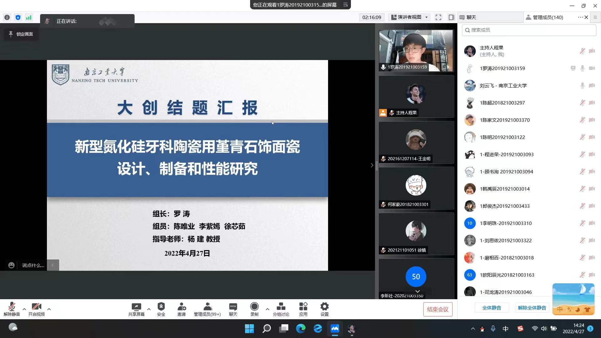 4月27日,mk体育线上举办2021年省级老员工创新创业与实践开放基金项目结题答辩暨2022年校级大创中期汇报。全体项目组成员参加,2021级同学积极参加学习。