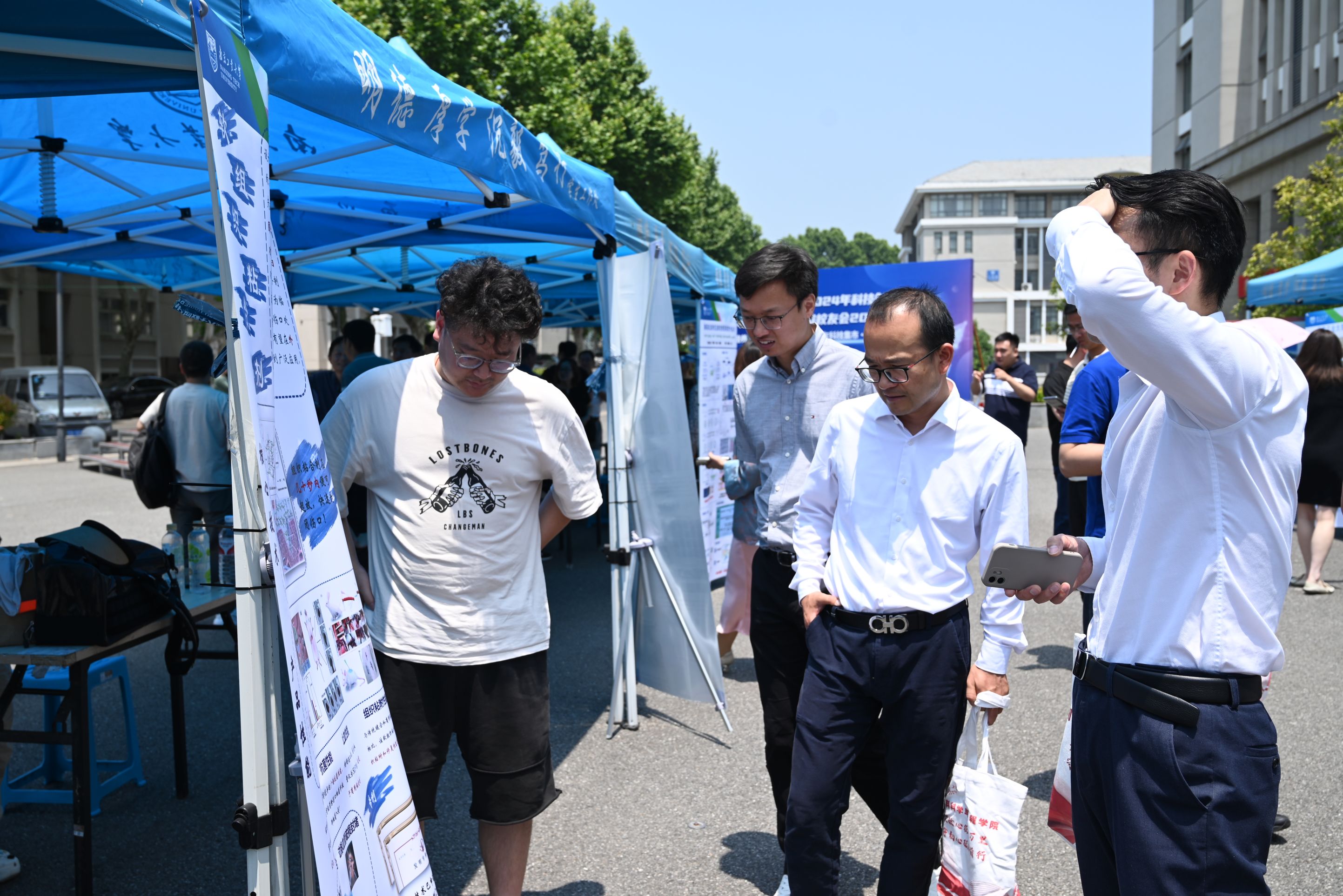公司党政领导、各系主任等陪同广大员工、同学来到集市现场,近距离体验创新科技成果。员工们结合自己的创业经验和市场洞察,与参展团队进行了深入的交流和探讨,提出许多孵化建议,对部分成果转化落地表达了极大兴趣。