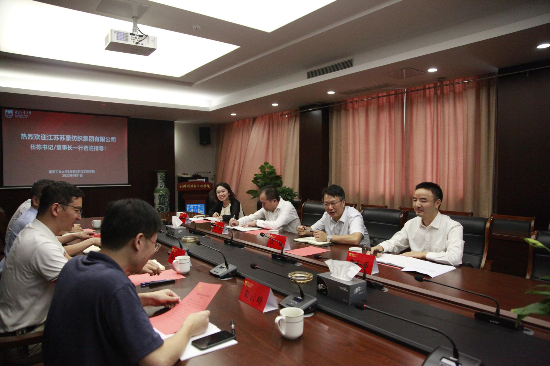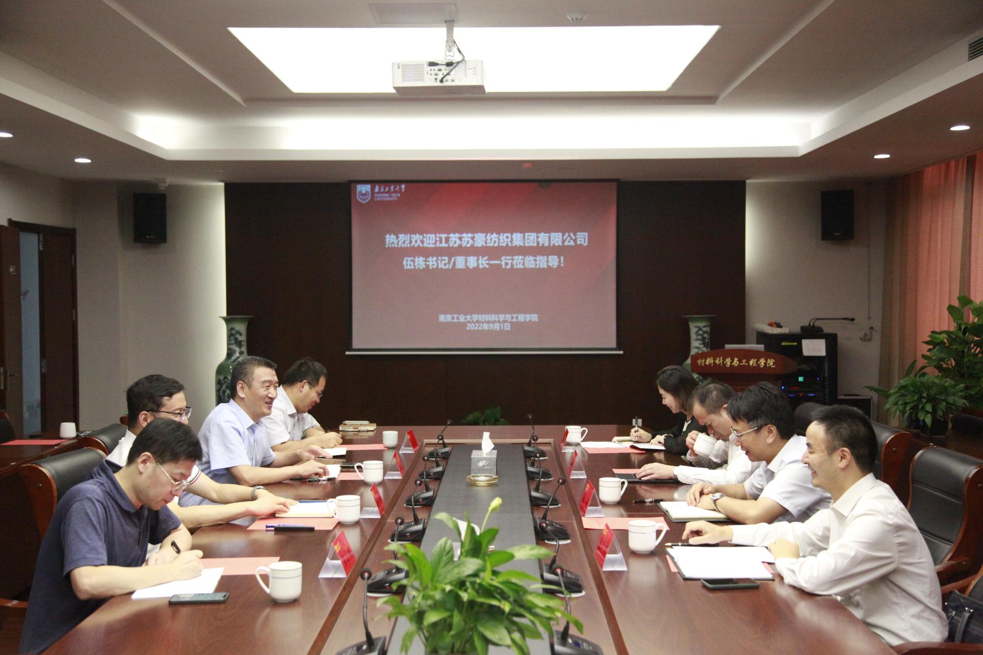 9月1日下午,江苏苏豪纺织集团党委书记、董事长伍栋,党委委员、常务副总经理孙吉东,党办人力资源部总经理张仁乐、副总经理黄荟一行来公司考察交流。