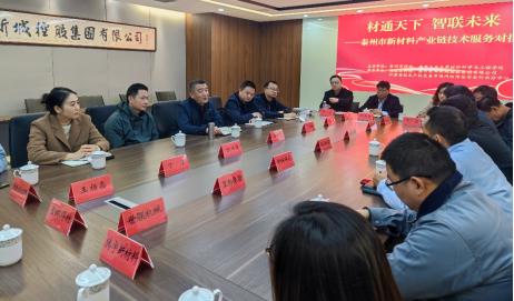 为深入挖掘新材料企业发展技术需求,深化校地企合作,推进科技成果“落地生根”,11月21日下午,材料公司党委书记高树军、副经理沈岳松率公司青年创新团队成员陈双俊、沈育才、王杨鑫、邱守添、丁洁等走进泰州海陵区开展“砼创行”产学研交流活动。泰州市科协学术部部长林来宏、泰州东部新城控股集团东城信息科技有限公司总经理尤捷、泰州市海陵区科协主席王磊、地方企业代表参加交流会,王磊主持交流会。