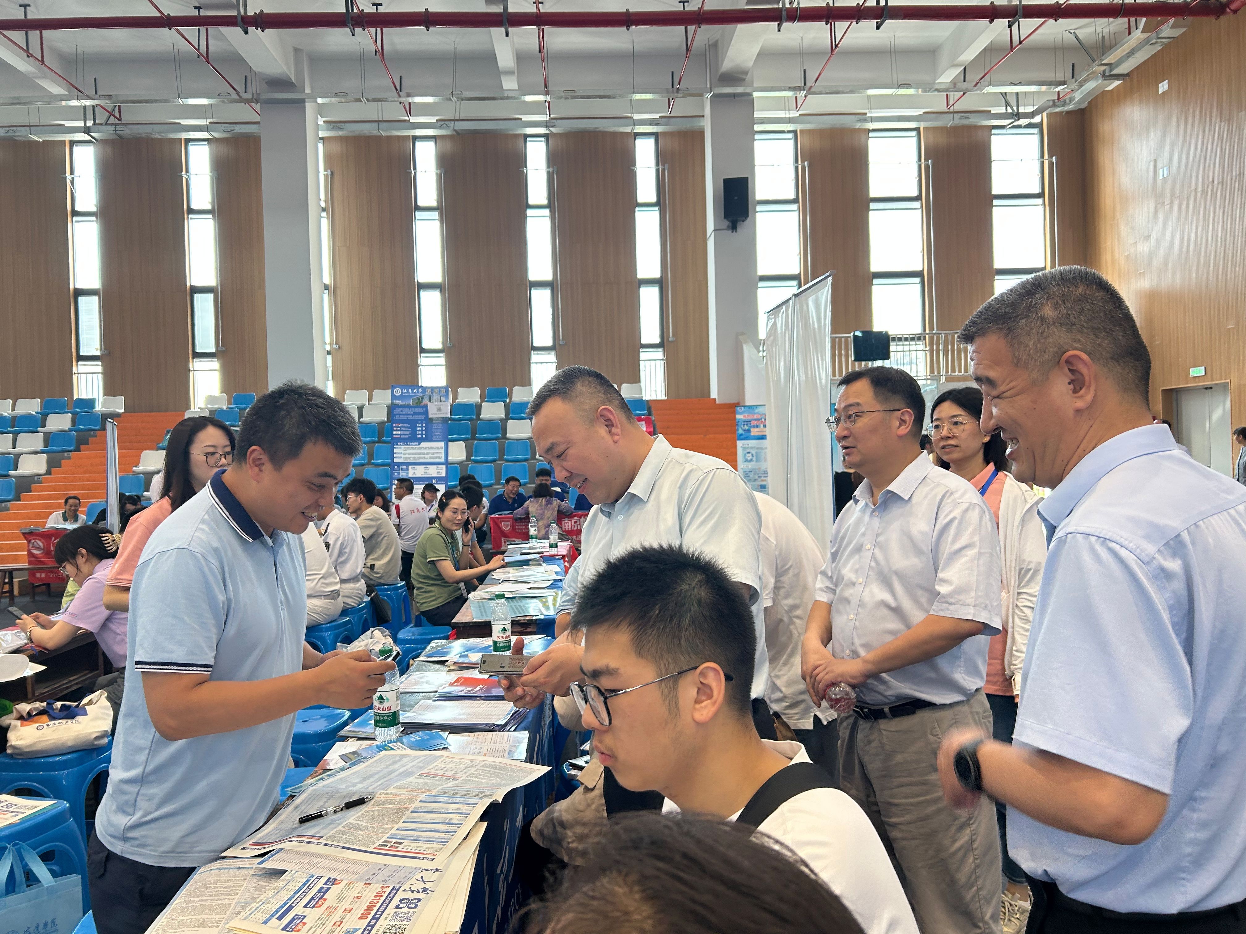 在泰州期间,黄锁明深入招生宣传现场,亲切慰问招生宣传组工作人员,勉励大家热情接待考生与家长,大力宣传公司优势特色,广招天下英才。现场向考生及家长介绍公司办学历史、优势特色、招生政策等内容,了解考生情况,与考生及家长进行面对面交流。