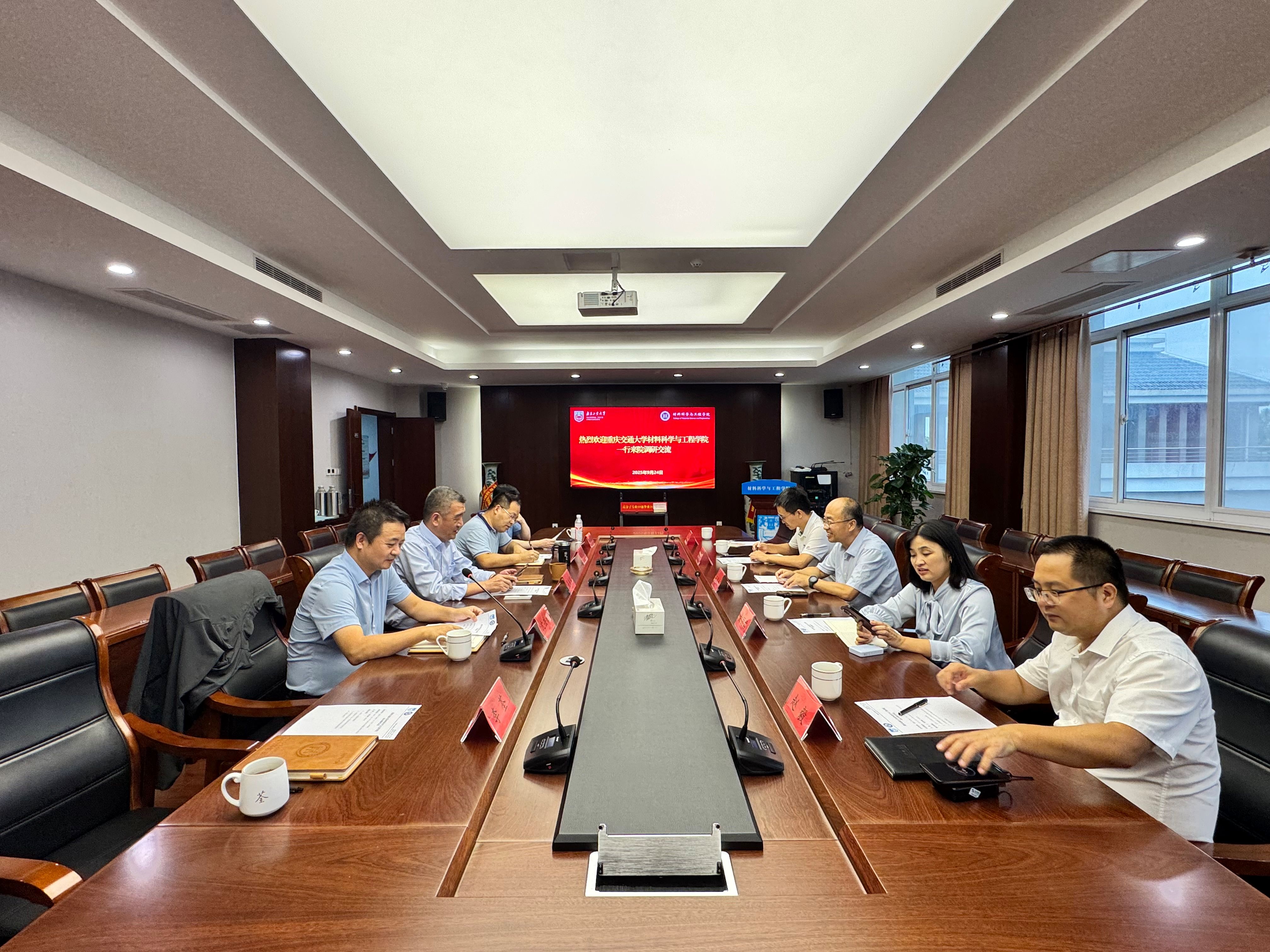 9月24日下午,重庆交通大学mk体育经理王俊杰一行来院交流调研,公司党委书记高树军等党政班子成员出席会议,会议由副经理沈岳松主持。