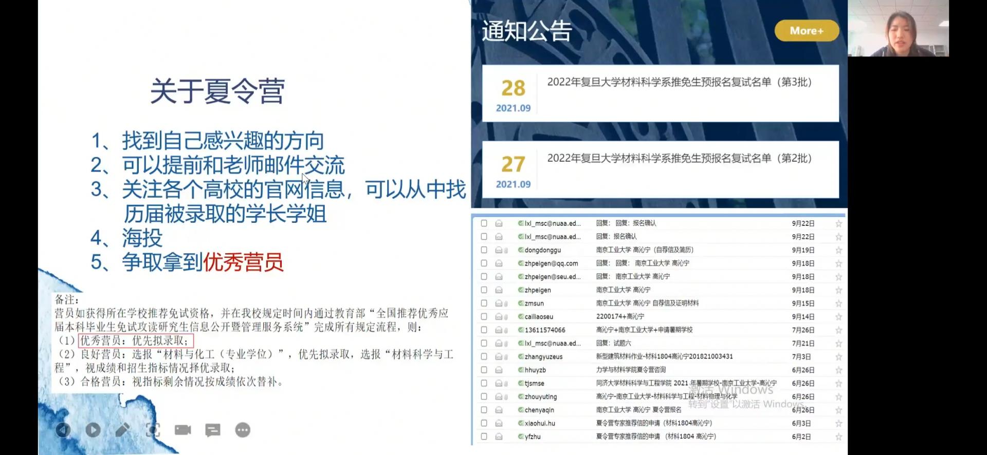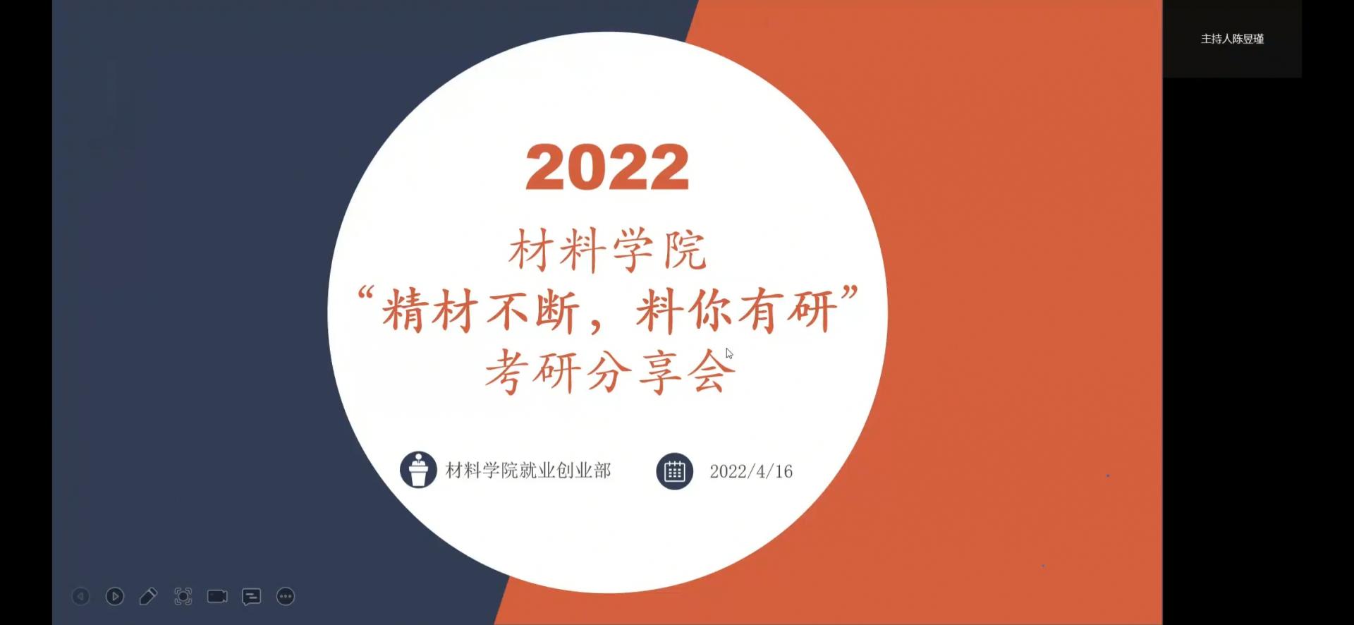 2022年4月16日下午,mk体育“薪火不灭 传承经验”考研经验分享会线上顺利举行。活动由本科生党支部与员工会就业创业部共同组织开展。参加本次分享会的有材料公司党委副书记石防震老师、学办主任丁楠老师、团委书记颜文老师、辅导员王旭东老师、18级党员以及两百余名员工。