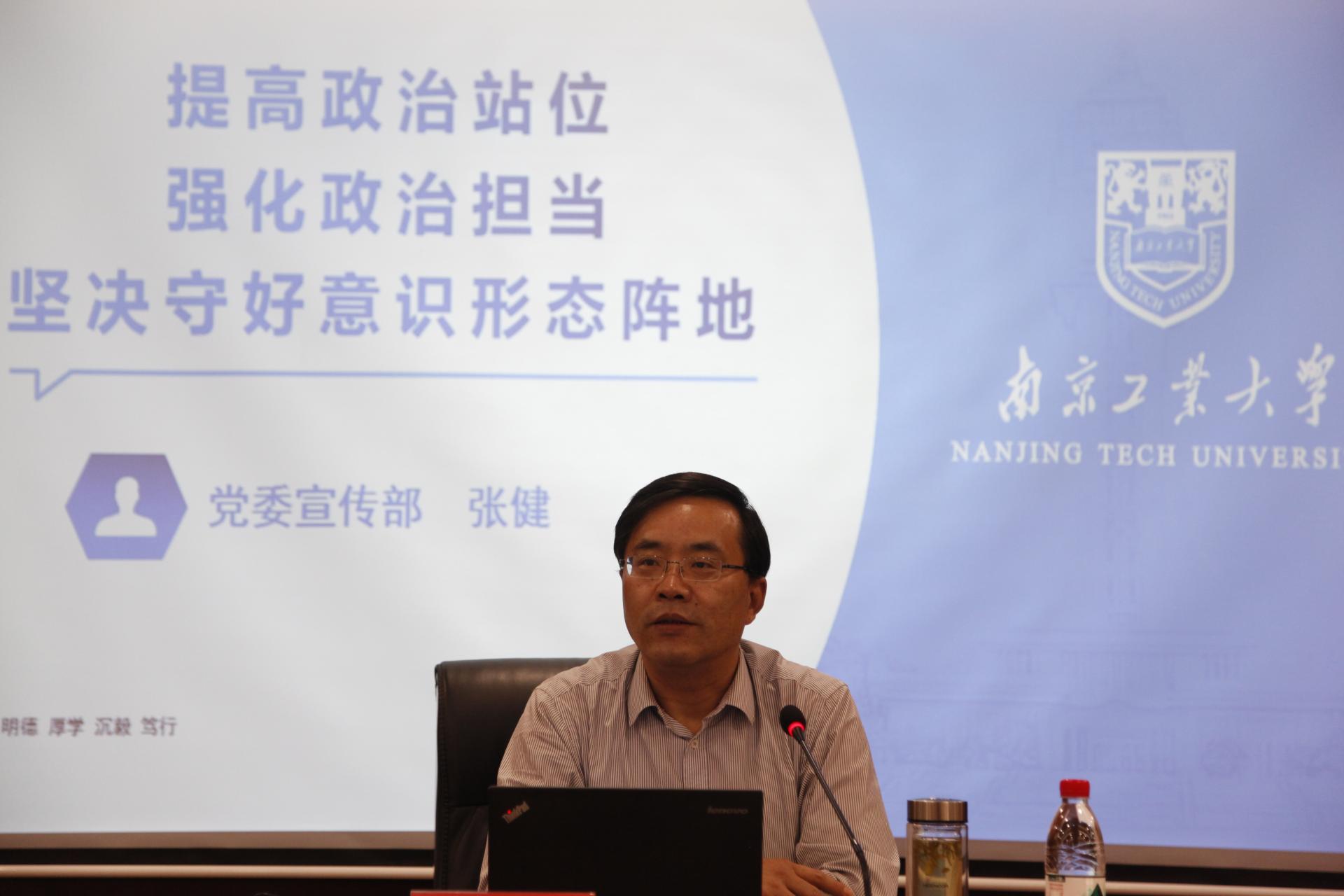 张健部长以“提高政治站位,强化责任担当,坚决守好意识形态阵地”为题,为与会同志作了精彩的辅导报告。他从学习领会习近平总书记关于意识形态工作的重要论述、高校意识形态主要风险点、切实履行意识形态工作责任三个方面,阐述了做好高校意识形态工作的极端重要性和紧迫性,通过大量具体案例分析了高校