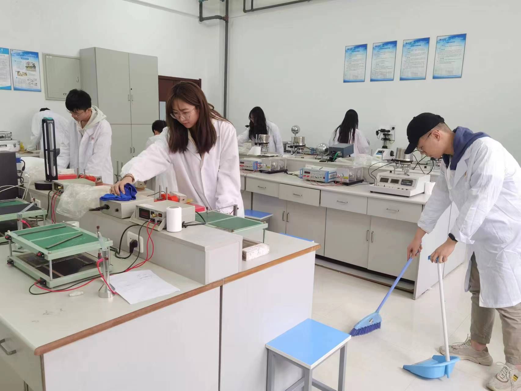 下午两点,本科生党支部全体党员和部分积极分子积极参与义务劳动。党员同志们在各自负责人带领下,分工合作,认真投入到mk体育基础实验室的卫生清洁中。经过几个小时的努力,实验室焕然一新,器材摆放井井有条,桌椅地面一尘不染,为之后的实验教学工作提供了舒适安全、整洁优美的环境。