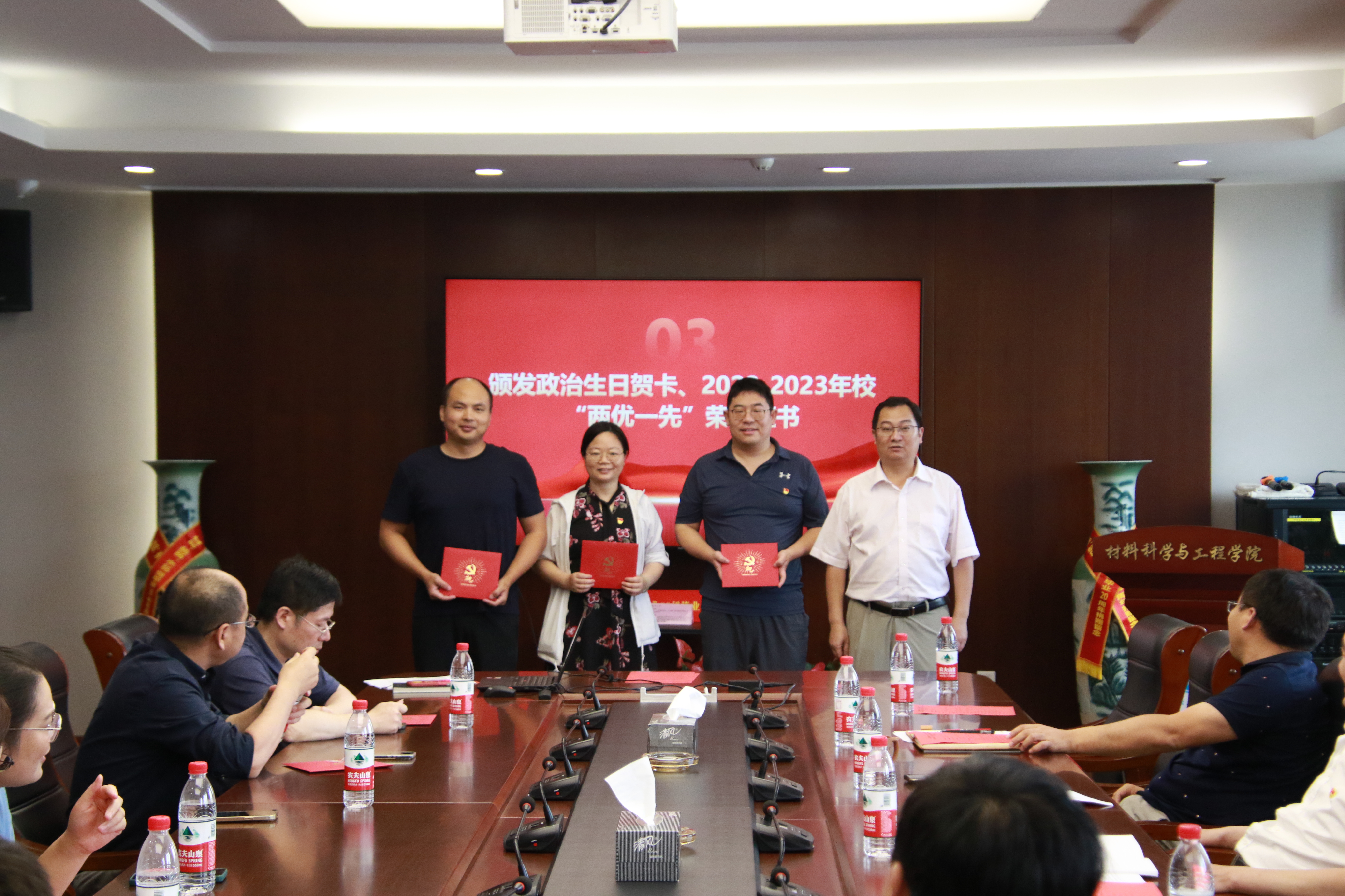 为深入学习贯彻党的二十大精神,进一步扎实开展好学习贯彻习近平新时代中国特色社会主义思想主题教育,7月1日上午,材料公司党委在润德楼A518会议室举行2023年党员集体政治生日座谈会,为入党整5、10、15、20、25、30周年的30名师生党员集体过“政治生日”,共庆建党102周年。公司领导班子、师生党员代表、2022-2023年度“两优一先”获奖代表等参加会议。会议由党委副书记石防震主持。