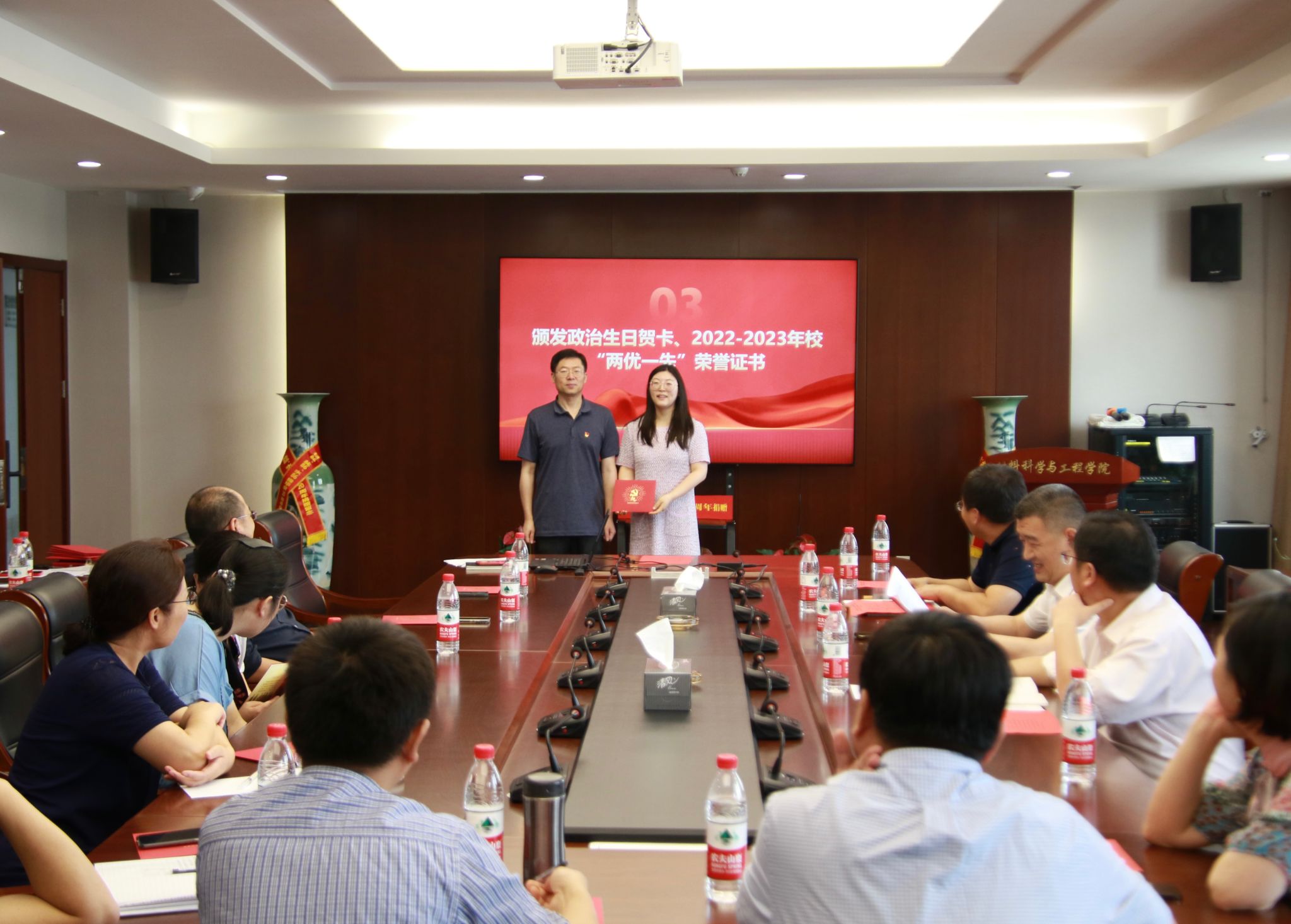 会上,石防震副书记领学了习近平在文化传承发展座谈会上的重要讲话精神。经理、党委副书记崔升同志宣读了过“政治生日”的师生党员名单和2022-2023年度校“两优一先”获奖集体和个人名单,并对他们表示诚挚的祝贺。与会领导分别为过“政治生日”的师生党员赠送“政治生日”贺卡,为校“两优一先”获奖集体和个人颁发荣誉证书。