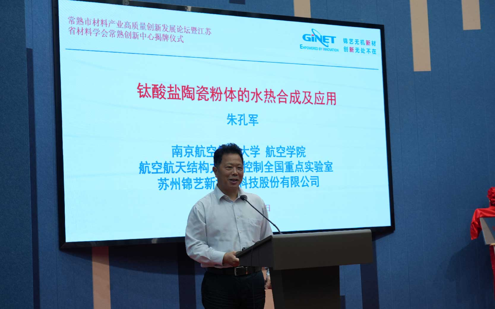 南京航空航天大学朱孔军教授在苏州深入开展产学研合作,围绕“钛酸盐陶瓷粉体的水热合成及应用”作了大会分享。