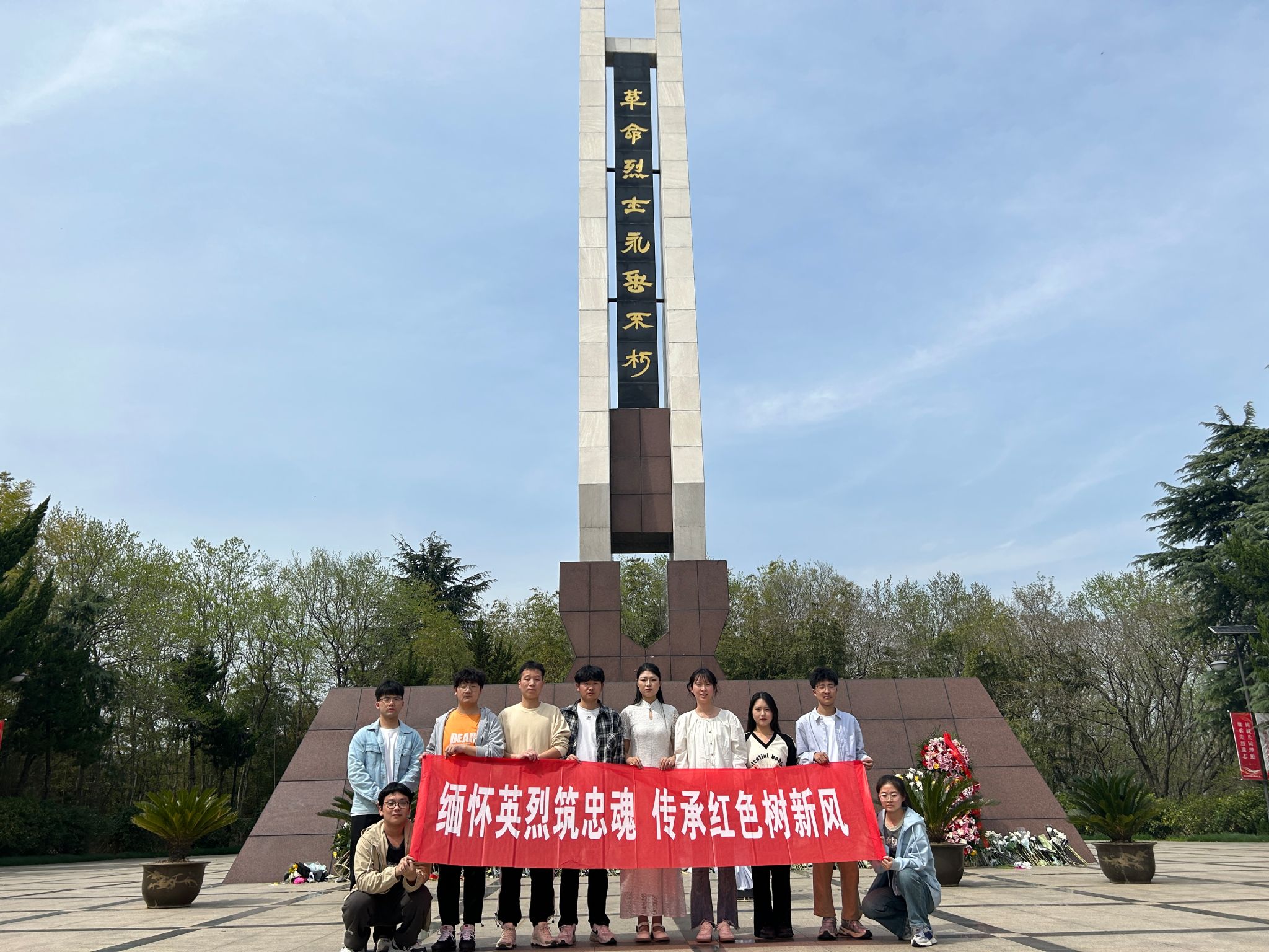 党员和入党积极分子们怀着崇敬的心情,整齐列队,在求雨山革命烈士纪念碑前肃立。全体党员向革命烈士默哀三分钟,表达对先烈的深切缅怀和崇高敬意。党员范圆梦同志带领大家回顾了革命先烈的英勇事迹,号召全体党员和入党积极分子们继承和发扬党的光荣传统,不忘初心、牢记使命,为党的事业继续奋斗。丁刚同志表示:英雄事迹永垂不朽,继往开来时代发展。作为新时代的青年,我们要时刻牢记中华儿女的使命和担当,坚定不移跟党走,全心全意为人民服务。