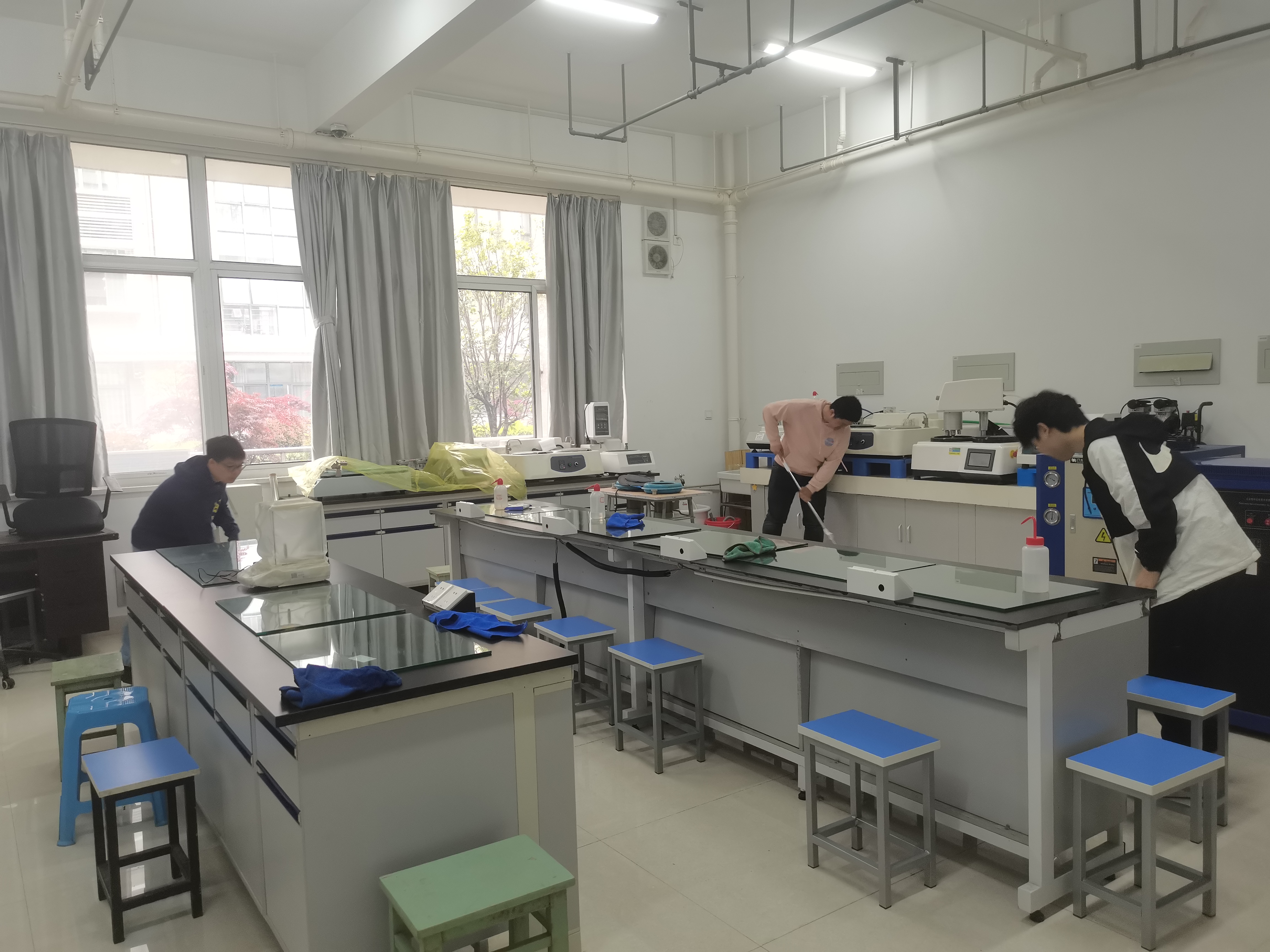 上午九时,支部党员与入党积极分子踊跃前往mk体育润德楼积极参与实验室卫生志愿清扫劳动。在实验室老师与支部书记带领下,支部成员以小组为单位,分工明确,共同协作。打扫实验室垃圾、清理废弃物品、擦拭实验仪器设备、整理整齐实验物品器材,支部成员们认真细致地清扫着实验室的每个角落。经过一个多小时如火如荼的劳动努力,各个实验室在大家的清扫下焕然一新。