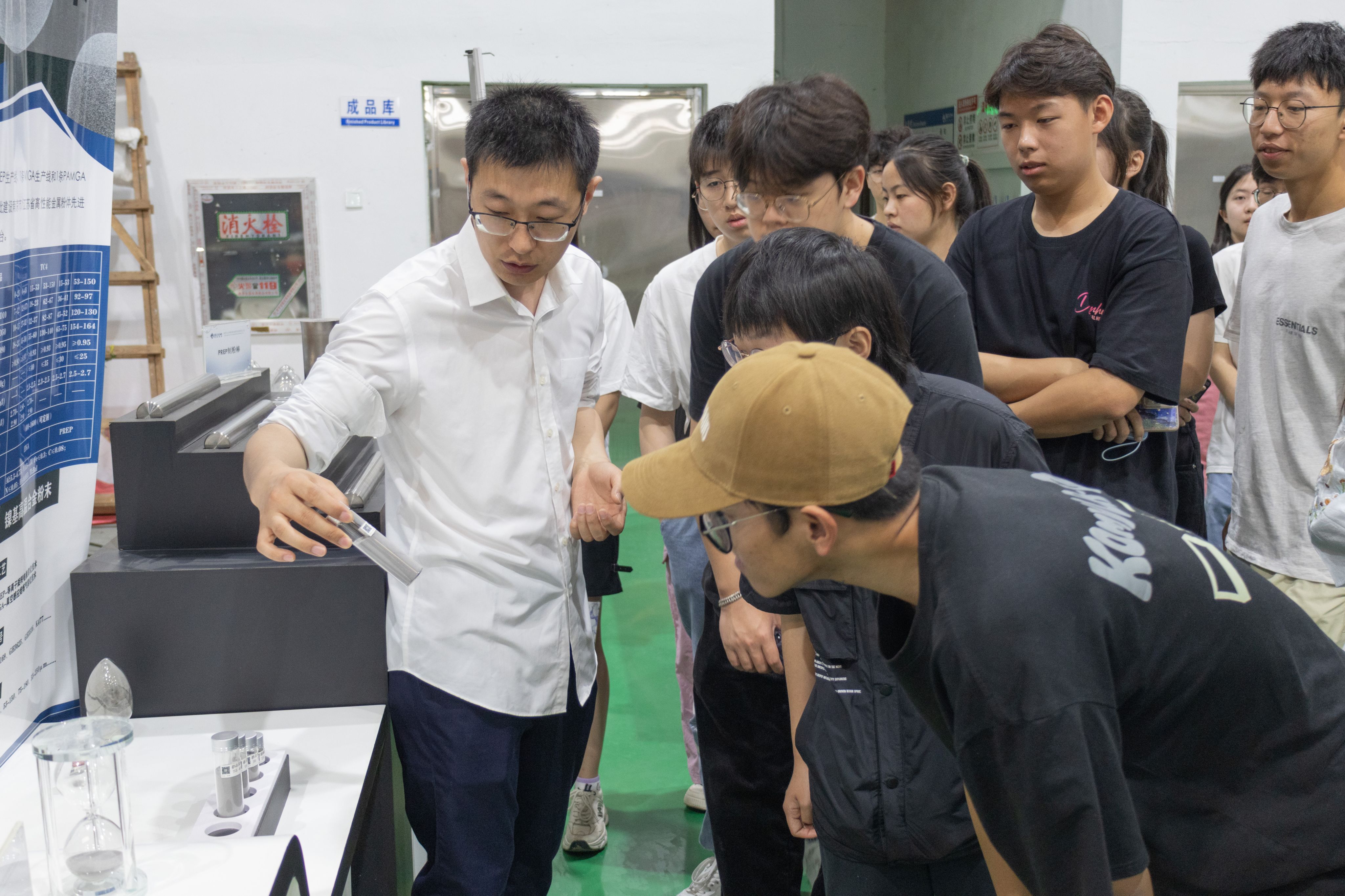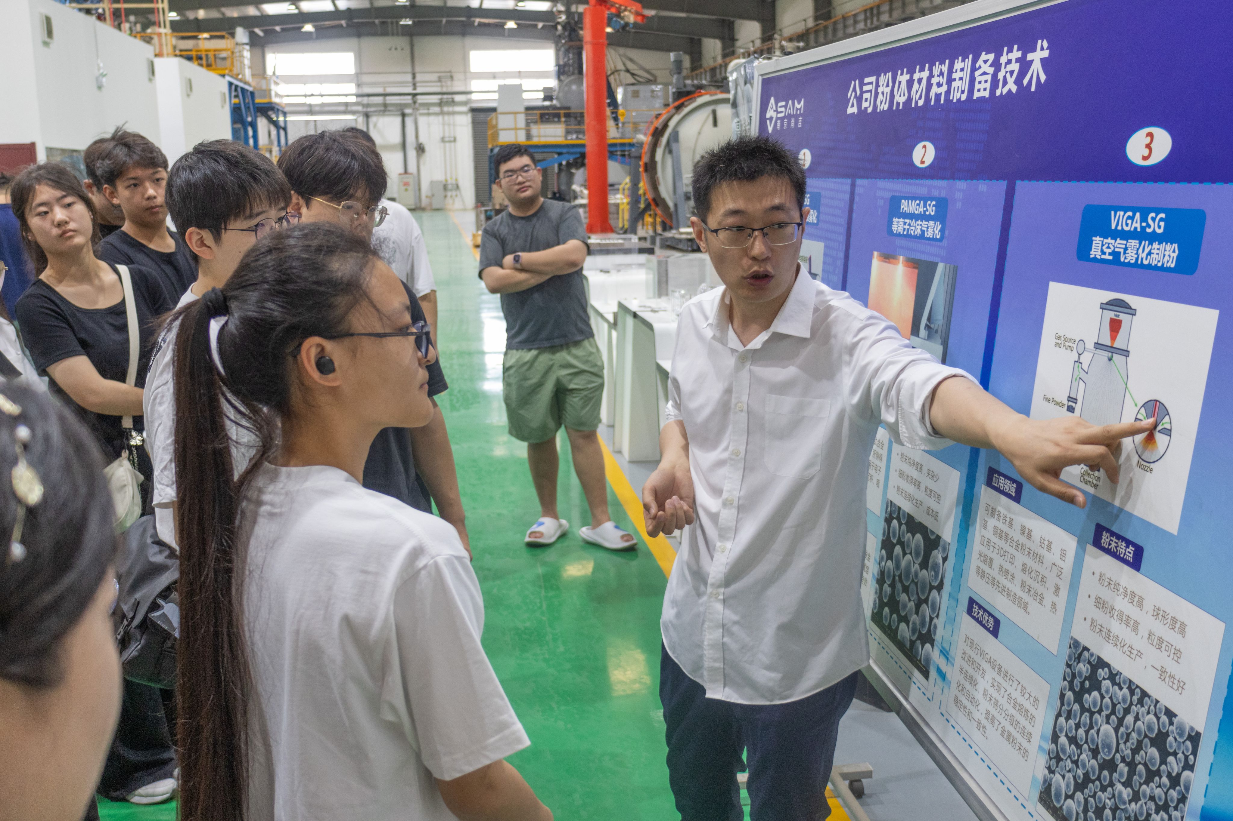 同学们在公司质量部部长黄响带领下参观了公司的3D打印、增材制造生产线,了解公司的金属成品原材料、金属粉末制备工艺以及3D打印工艺和产品。通过学习加深了同学们对3D打印、增材制造相关技术和金属材料行业发展趋势的了解,强化了创新实践能力。