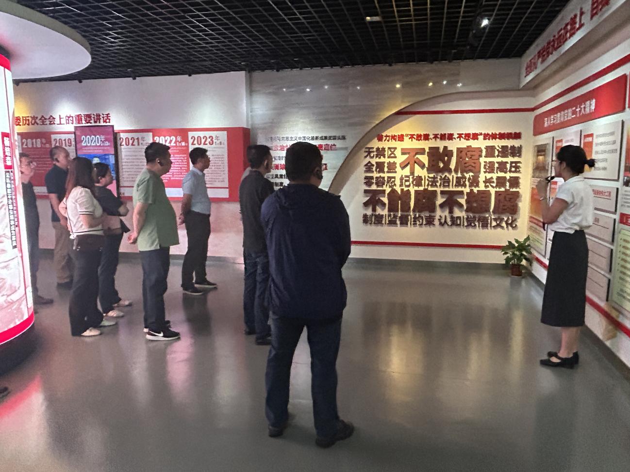 在纪念馆内,在讲解员的带领下党员们首先学习了王荷波同志领导工人运动、开展党建工作的革命事迹。通过珍贵的历史照片和文物资料,同志们深入了解了这位中国工人运动的先驱者如何组织京汉铁路工人大罢工、创建南京地区第一个党小组的光辉历程。在“八七会议”展区,大家认真学习了王荷波同志作为中央临时政治局委员参与制定武装斗争方针的重要贡献。通过“严守纪律 率先垂范”“克己奉公 两袖清风”等展陈,同志们深刻认识到王荷波同志作为我党首任中央监察委员会主席,在党的纪律检查工作初创时期的重要贡献。在“品重柱石”展厅,王荷波同志“不拿公家一分钱、不占群众一针一线”的廉洁事迹让在场党员深受教育。