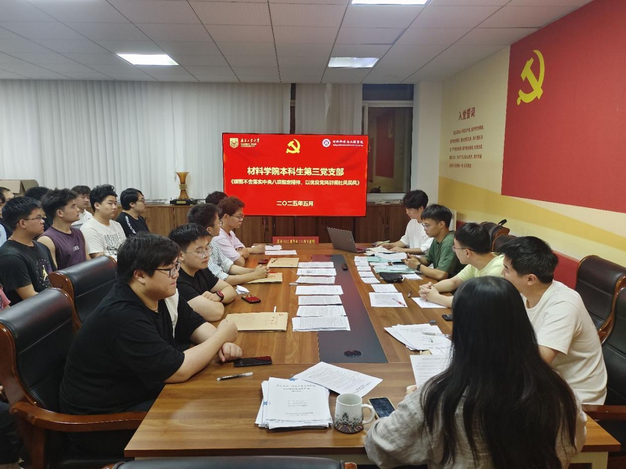 支部书记彭超带领全体党员深入学习《激励新时代青年在中国式现代化建设中挺膺担当》和《锲而不舍落实中央八项规定精神,以优良党风引领社风民风》等重要内容。作为新时代青年党员,要始终筑牢廉洁自律的思想防线,永葆共产党人的政治本色;要胸怀“国之大者”,勇担时代使命,在推进中国式现代化的伟大实践中挺膺担当、建功立业。希望即将踏上新征程的党员能够始终牢记“一个党员就是一面旗帜”的庄严承诺,在新的岗位上继续发挥先锋模范作用。既要做专业领域的排头兵,更要当服务群众的贴心人。低年级党员向毕业生党员赠送精心准备的毕业纪念品。满载温情的“红色毕业礼”既是对过往奋斗的致敬,更是对崭新征程的期许。