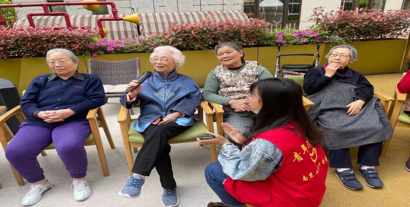 在工作人员的带领下,青年志愿者首先通过与老人们一起做健康操,拉近了与老人们的距离。随后,志愿者们向老人们展示了精心准备和编排的才艺表演,表达出诚挚的心意,让老人们感受到了来自志愿者们的温暖。最后志愿者们用倾听、交谈等方式走进老人的内心,倾听老人的青葱年少时光的故事。