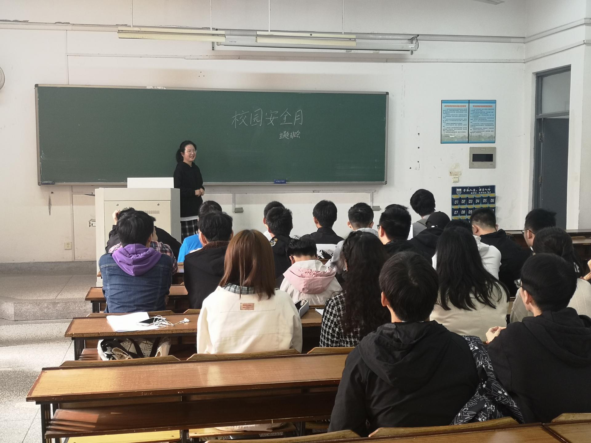 在主题班会开展过程中,各年级辅导员以PPT及板书的形式,分门别类地为班级同学介绍了校园安全所包括的各项具体内容,让同学们对校园安全具备整体性认知。借助图片、视频等多种视听手段,以校园内发生的身边真实案例、校园外发生的社会典型案例,提出校园安全各方面可能存在与实际存在的诸多隐患、隐忧和风险,让同学们获得更加直观的感受和警醒。同时,还设置了互动交流环节,由若干同学组成小组,探讨分析公司中存在的校园安全隐患问题,各小组选派代表上台交流发言。