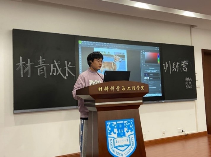 活动在吕烨同学的主持下开始。首先由浦腾飞同学向大一材青们讲述如何有效设立目标以及探寻生活的意义等系列问题,分享自己的学习经验,他希望自己的经验分享可以给在场的材青们一定的启示。紧接着,视觉传媒部周懿同学讲解了有关音频制作的专业知识,通过专业化的讲授提升材青们的操作技能,使大家能够更从容地完成部门的任务。最后,美工设计部陈楷宸同学为材青们详细讲解了PS以及3D建模软件的使用方法,丰富了大家图片处理方面的知识,提升了材青们图片处理工作的效率。