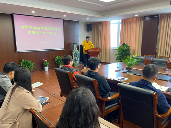 王安全老师部署了新学期各年级的常规工作、重点工作并传达了公司新学期疫情防控的相关要求,同时强调各班级上传下达公司各项通知的规范性、及时性。辅导员张宇、李秋龙两位老师就疫情常态化形势下每日健康打卡、风险等级提醒、重点地区人员排查等工作作了进一步部署。随后,材研1903曾强强作为班长代表发言,从班级事务管理、学习科研和就业等三个方面分享了班级工作经验。