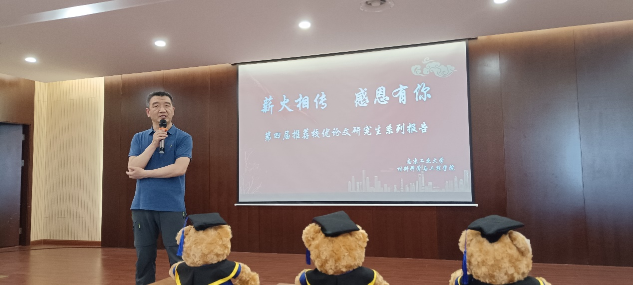 闭幕式上,材料公司党委副书记石防震感谢16位研究生带来的精彩分享,勉励大家在做科研的道路上无惧失败、脚踏实地、戒骄戒躁,瞄准材料领域卡脖子技术持之以恒的钻研;学以致用,让科研成果转化为生产力。