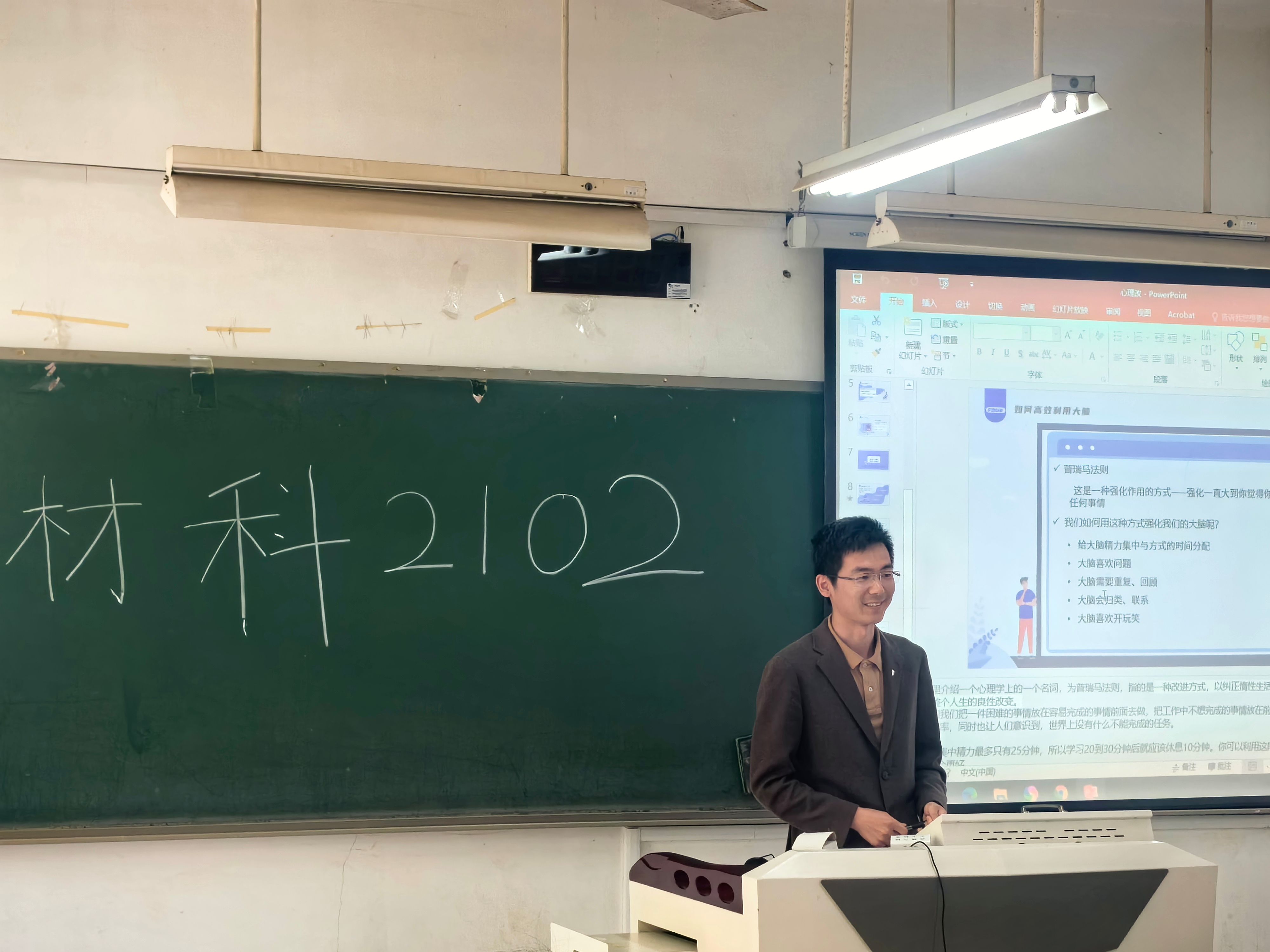 材科2102班陈施豪、刘星宇通过分享自身近期参加各类企业实地参观和招聘会的实际感受,呼吁同学们加强当前对于就业市场的了解,拓宽求职视野。徐静晓以《给心灵减负》为题,主要与同学们分享当前考研心理压力的来源及缓解方式。班主任滕彭彭结合自身考研及工作经历,鼓励同学们合理定位,坚定信心。