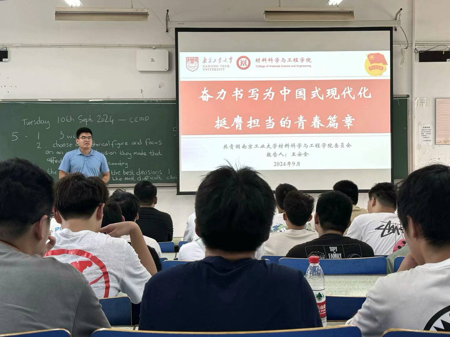 公司团委书记王安全老师则为新生们献上了一场精彩的团学辅导。他带领同学们回顾了中国共产主义青年团的光辉历程,强调了新时代青年的历史使命和责任担当。王老师的演讲激励着每一位新生牢记时代使命,砥砺前行,为中国式现代化贡献自己的青春力量。