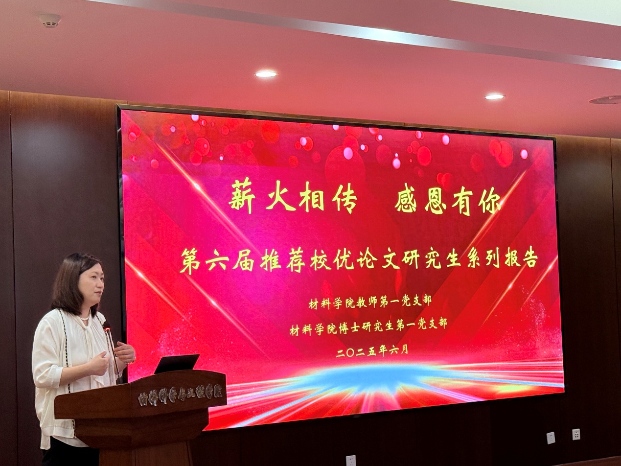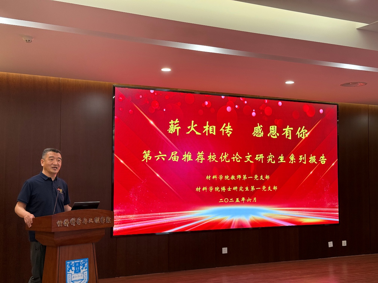 6月10日上午,由mk体育教师第一党支部和博士研究生第一党支部联合举办的“薪火相传·感恩有你”第六届推荐校优论文研究生系列报告会在润德楼B512圆满结束。材料公司党委书记高树军、副经理王丽熙以及相关方向的本硕博同学参加。报告会由教师第一党支部书记杨建主持。