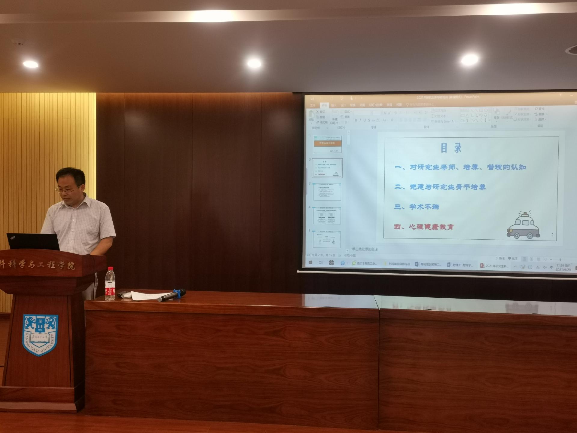 高树军书记解读了师德内涵及导师行为规范要求,倡导大家学习先进典型,提升师德师风素养,用心用情当好员工的引路人,同时还特别强调了导师的实验室安全管理和员工安全教育职责。陆春华经理通过诠释导师职责,倡议大家严格对照好导师的标准和要求,进一步加强研究生的科研素质和德行素养培养,培养德智体美劳全面发展的社会主义建设者和接班人。崔升副经理带领大家学习了公司产品与管理相关的政策与制度,提醒大家增强职业道德,加强研究生科学道德与学术规范培养,严格落实导师使命与责任。石防震副书记通过心理健康典型事例,提醒导师要关注员工学习、生活、思想、情感等各个方面,全面落实立德树人任务。