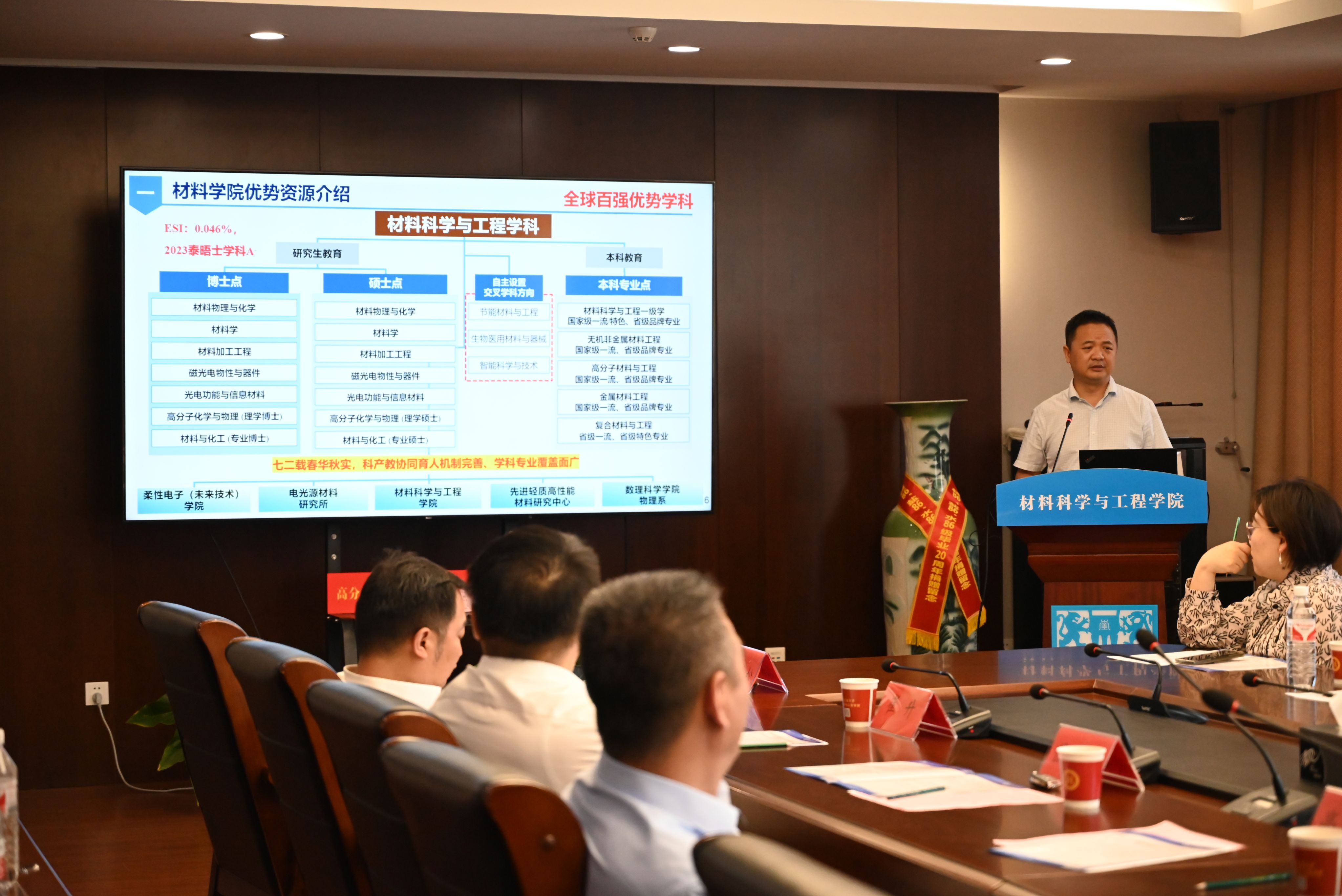 材料公司党政领导、系主任、各支部书记、老师等参加大会。