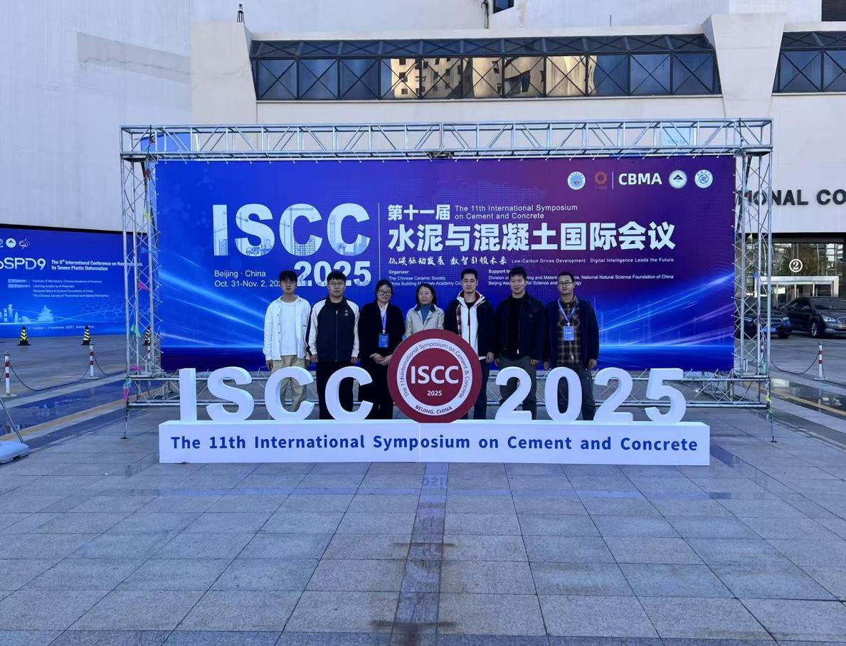 2025年11月1-2日,由中国硅酸盐学会和中国建筑材料科学研究总院有限公司主办,中国硅酸盐学会水泥分会承办的第十一届水泥与混凝土国际会议在北京顺利召开。本届大会以“低碳驱动发展,数智引领未来”为主题,来自全球20多个国家和地区的500余位专家学者齐聚一堂,围绕水泥基材料低碳发展的前沿趋势与数字赋能新技术展开深入交流。公司马素花教授、博士生李淯伟和褚家浩以及研究生刘姚、戴航、王训芝和陆金帆一行参会,展示公司低碳胶凝材料方向最新科研成果。