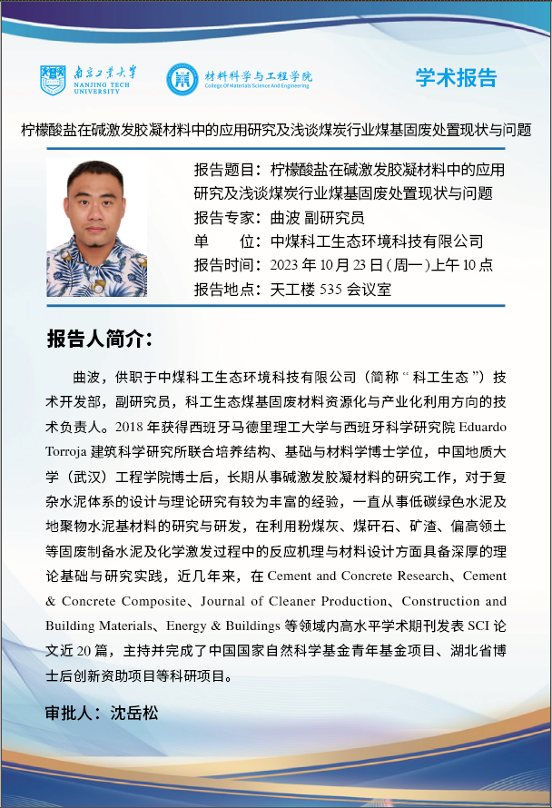碱激发胶凝材料因其生产过程与传统的硅酸盐水泥相比在减少CO2排放、有效利用工业副产品与废弃物、降低生产能耗等方面表现优异,是助力水泥行业走向净零碳之路的重要选择之一。然而,该体系存在体积稳定性差、凝结时间过快、制备条件复杂等问题,限制了其工程应用。报告人近年来开展了柠檬酸盐-氢氧化钠激发剂体系对胶凝材料性能的影响与机制研究,取得良好的效果。此外,报告人目前供职于煤炭科技相关央企,着力于煤基固废处置与资源化利用,而煤矸石、粉煤灰等固废与水泥行业密不可分,因此,本次报告将围绕以下话题展开: