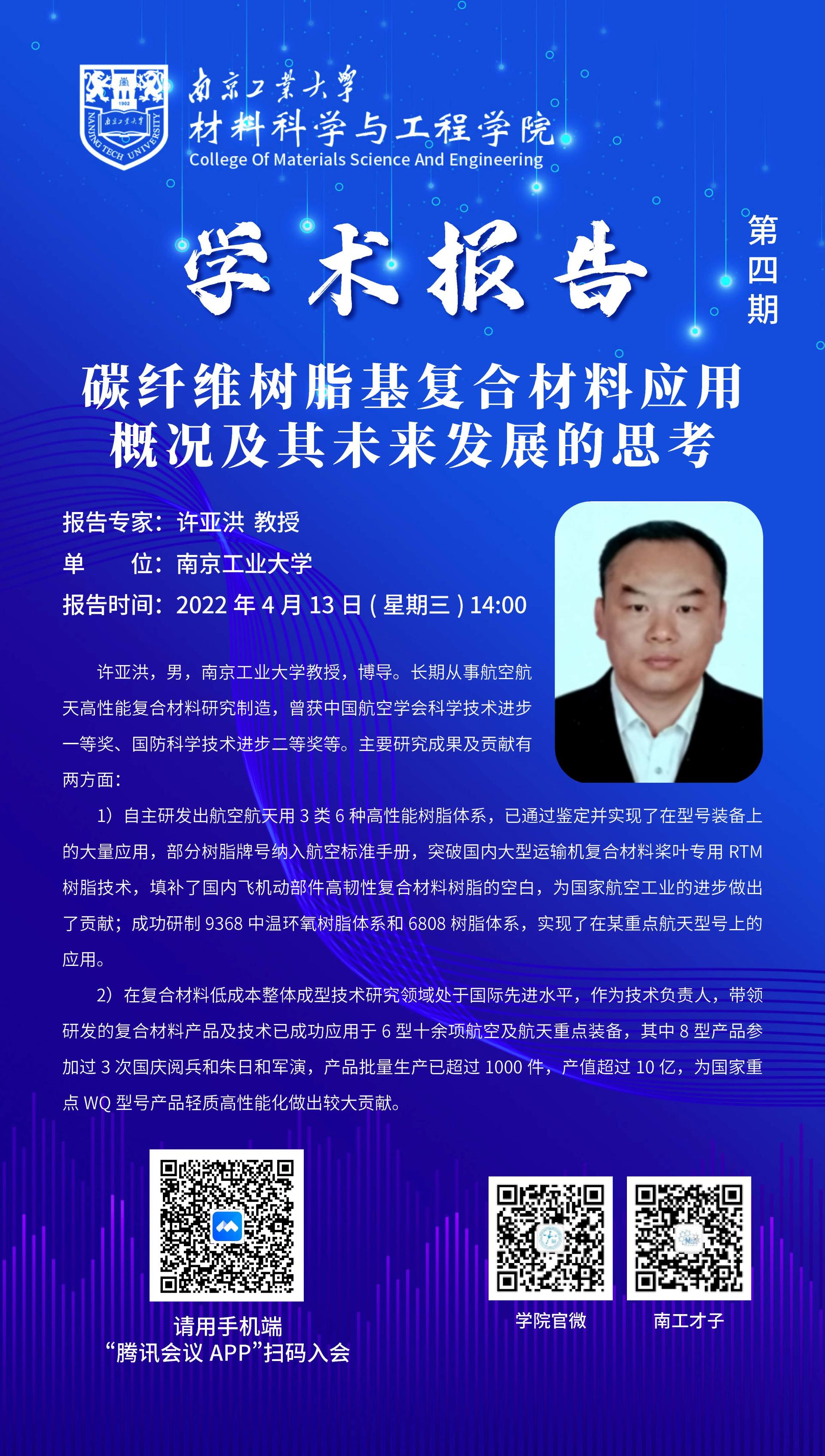 【润德集-导师学术报告会】碳纤维树脂基复合材料应用概况及其未来发展的思考