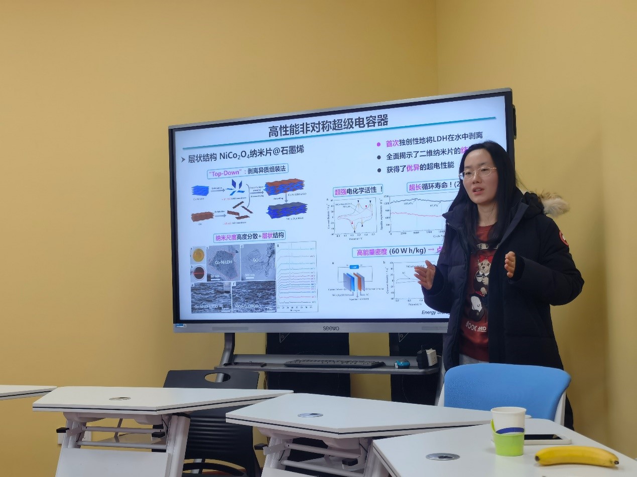 李倩为mk体育青年教师们做了一场题为“构筑赝电容电极材料用于超级电容器与电容去离子技术”的学术报告。她向大家介绍了赝电容电极材料储存离子的机制,并对其在电化学储能领域的应用和在功率型储能器件超级电容器中的应用研究进行阐述,详细介析了她在该领域的学术成果。随后,她对赝电容电极材料在电容去离子技术中的应用展开了具体阐述分析,并对此研究方向做了深入的前景展望。