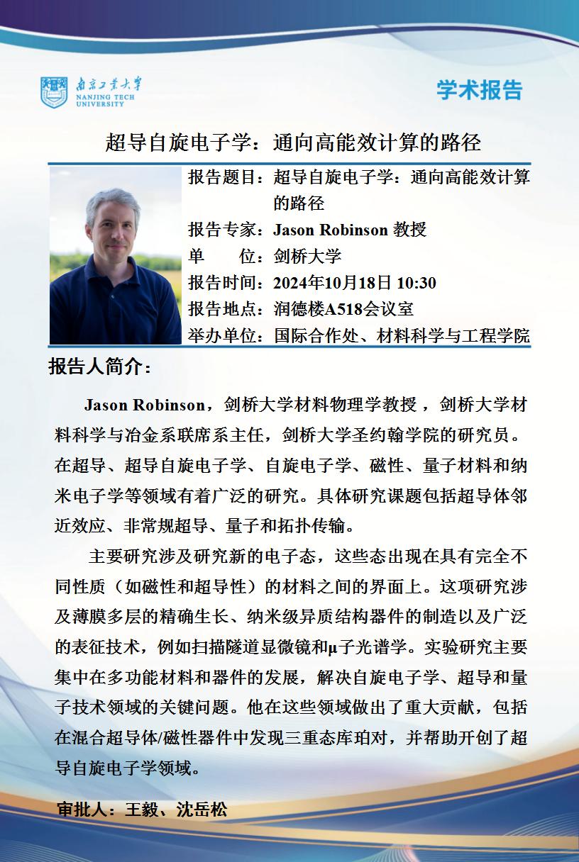 Jason教授是剑桥大学材料物理学教授 ,剑桥大学材料科学与冶金系联席系主任,还是剑桥大学圣约翰公司的研究员。他在超导、超导自旋电子学、 自旋电子学、磁性、量子材料和纳米电子学等领域有着广泛的研究。具体研究课题包括超导体邻近效应、非常规超导、量子和拓扑传输。