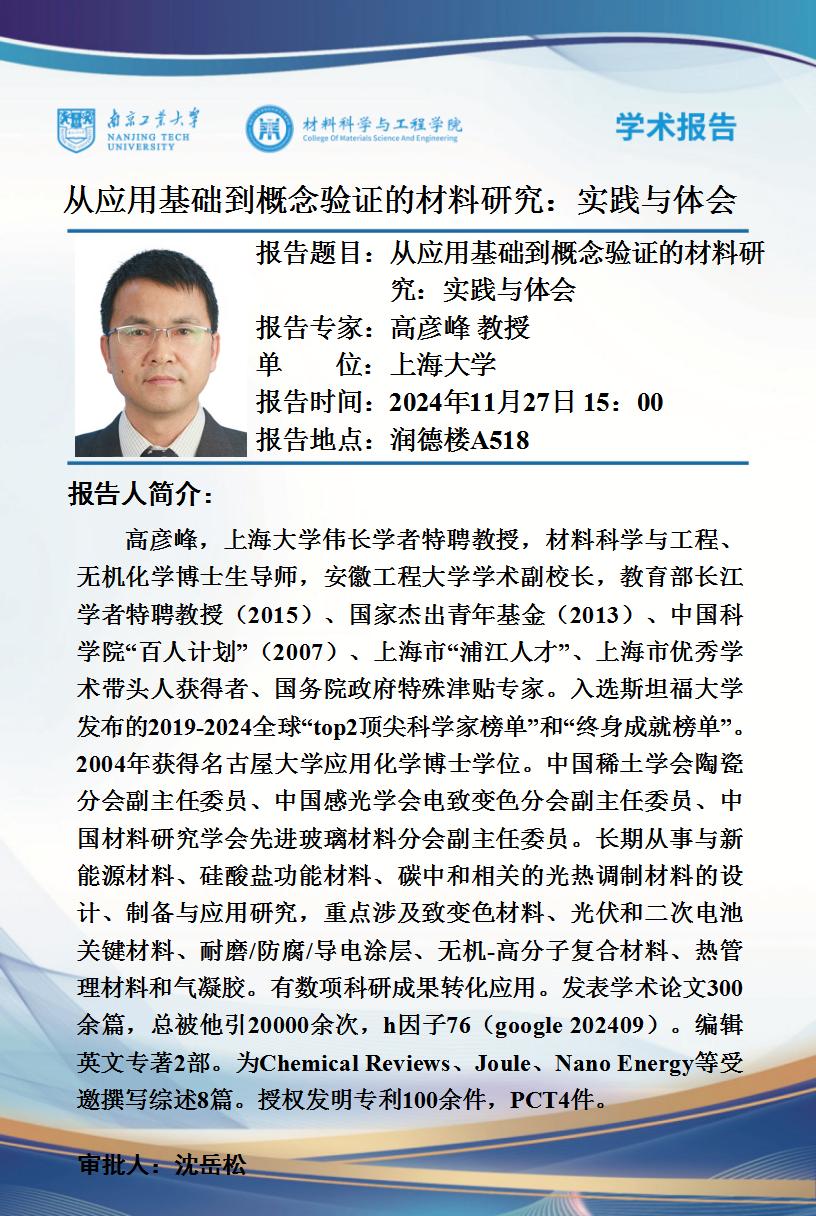 报告题目:从应用基础到概念验证的材料研究:实践与体会