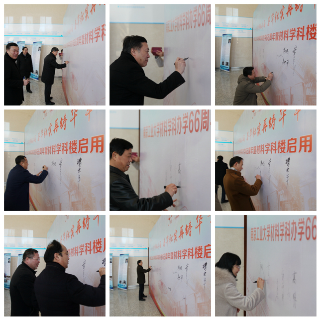 嘉宾们提笔签名、合影留念后,由公司领导、教师们带领,一同参观了材料学科楼,走访实验室及办公室,鼓励师生们为材料学科发展勠力奋进,携手同行,争取更辉煌的成绩。