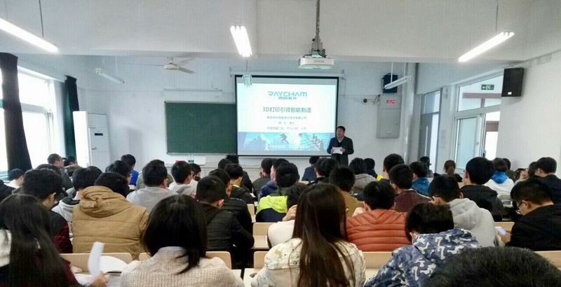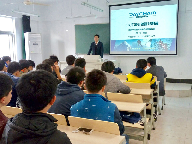 下午3点半,讲座伊始,邢飞博士简述了材料与3D打印之间的关系,引起了同学们对这一技术的兴趣,在轻松的氛围中开始了今天的讲座。他首先向我们讲解了现在的科技背景,德国首先将其定义的工业4.0,即网络化生产,虚实融合。而中国也提出了第一个十年行动刚领《中国制造2025》,这个计划将带领我国制造业逐步完成由“中国制造”向“中国创造”的转变。制造业的发展给3D打印技术创造了一个很大的舞台,从19世纪开始至今,3D打印技术越来越成熟,应用越来越广,邢飞博士简明扼要的介绍了国内3D打印的现况和产业链条以及未来广阔的发展前景,3D打印颠覆了传统的制造工艺,在我国乃至世界各地都受到支持,是未来发展中制造业不可缺少的一部分。最后,邢飞博士向大家介绍了他的骄傲:中科煜宸激光技术有限公司。煜宸集团是由中国先进制造产业科技领军人才团队创立,以激光加工技术、工业机器人以及大数据技术为主的高科技集团公司,它依托中科院的强大科研实力,秉承对产品品质的执着追求,凭借一系列高质量、高可靠性的先进智能化激光制造装备,不断通过技术创新向国际一流先进制造装备生产服务商迈进,通过掌握核心技术与自主知识产权,自主开发出多个国内首台(套)产品,成功为国内外客户提供整套先进制造技术解决方案及相关配套设施。