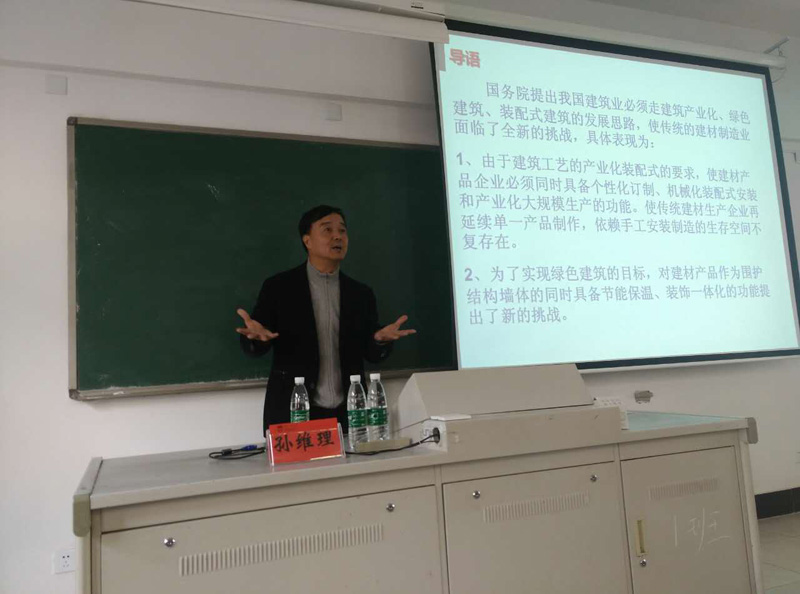 下午两点半,讲座开始。孙维理先生首先向我们介绍了关于新型建材的一些基本概念。为响应国务院关于建筑产业化,建筑节能的导向,优秀的新型建筑材料必须符合以下五个标准:1、遵循个性化定制,机械化装配,产业大规模生产的基本原则。2、实现绿色建筑的目标。3、保持机械化,设备化。4、实现物流运输产业化(特别是销往国外的产品)。5、适应建筑设计,施工工艺的改变,继而实现建材制造工艺的改变。孙维理先生介绍到,继十三五以来,国家对建材设计方面的节能减排要求显著提高,新型建材设计工艺也随之发生改变。之后,孙维理先生向我们介绍了关于南京旭建新型建材有限公司的一些成绩,其生产的加气混凝土等新型建材因生产规范,质量轻,强度高,质量好,被应用于南京奥林匹克中心场馆建筑群,苏州工业园区置业广场以及海内海外等诸多建筑,并在实践中的到充分的检验。此外,由南京旭建新型建材有限公司生产的产品,获得了包括全国,江苏多项绿色建筑奖,并获得许多国际检测机构的认证。最后,孙维理先生向我们总结了关于材料如何更好的适应工程实践的问题:应用于实际的材料要考虑材料的性能,制造工艺,成本等等,若想更好地适应于工程,就应当适应市场的结构,适应建筑设计,施工工艺的改变并作出相应的改变。讲座结束,mk体育副经理常辉教授向孙维理颁发了创新创业导师聘书。