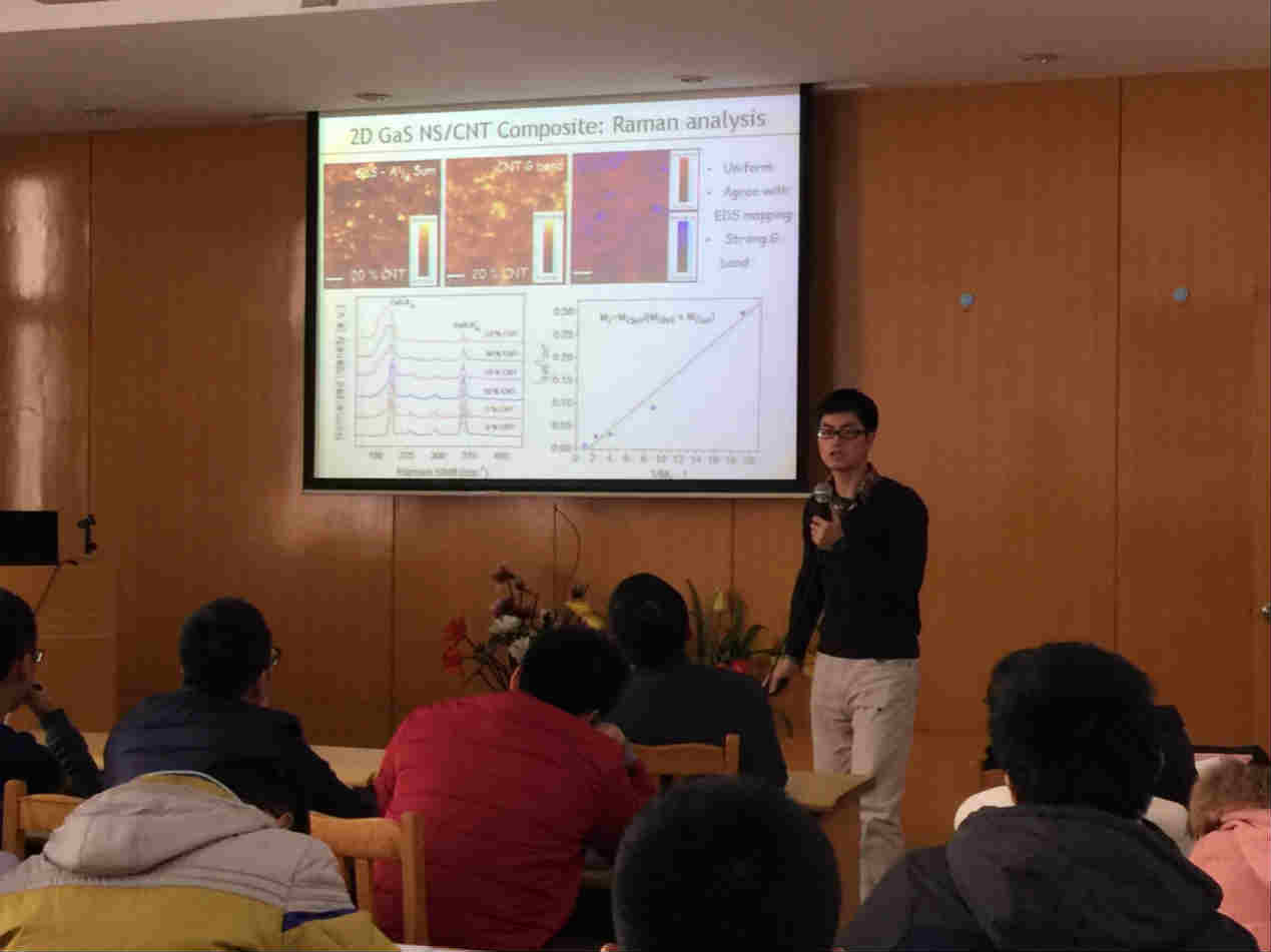 12月16日上午,应mk体育和江苏先进无机功能复合材料协同创新中心的邀请,爱尔兰都柏林圣三一公司博士后研究员张传芳博士在东南楼320教室为广大师生做了题为“Two-dimensional Nanosheets Produced by Liquid-phase Exfoliation: Structure, Characterizations and Applications—Transition Metal Dichalcogenides as an Example”的学术报告。mk体育杨建教授以及相关领域的教师和研究生参加了此次报告会。报告会由杨建教授主持。