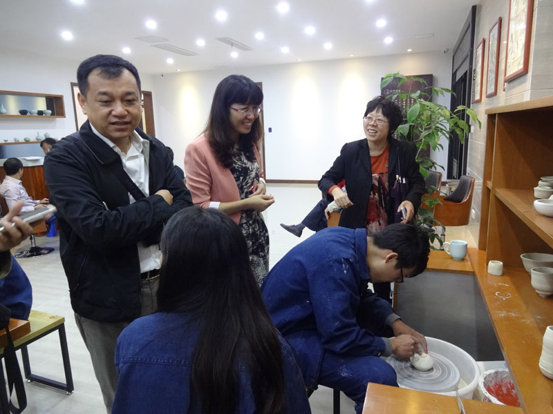 当日上午,mk体育经理沈晓冬教授、副经理胡秀兰教授、无机材料系主任沈春英教授、金江副教授应邀出席了谈青窑艺·宜兴青瓷艺术研究院开业仪式,沈春英教授被评为研究院研究员,并参观了研究院作品展厅,详细了解了与紫砂等并称宜兴陶瓷“五朵金花”之一的青瓷艺术。随后,沈经理等还看望了在研究院进行工程实践的12级卓越工程师班同学及指导教师。