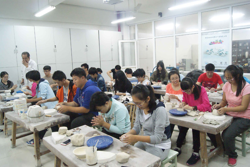 陶艺大赛从10月中旬开始报名,参赛选手经过陶艺理论学习、胚胎制作、上色和烧成,最终产生了近两百件作品。在胚胎制作环节,金泰其老师首先为参赛的同学讲解了制作陶艺作品的步骤以及操作过程中的注意事项,并为同学们做了示范。在金老师的指导和帮助下,参赛的同学们认真地投入到作品的设计与制作当中。经过努力,一个个或精致小巧或奇形怪状的作品相继成形。这些作品晾干一周之后,参赛者再给自己的作品上釉料,最后经过高温烧成。