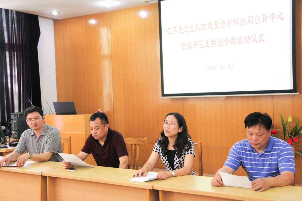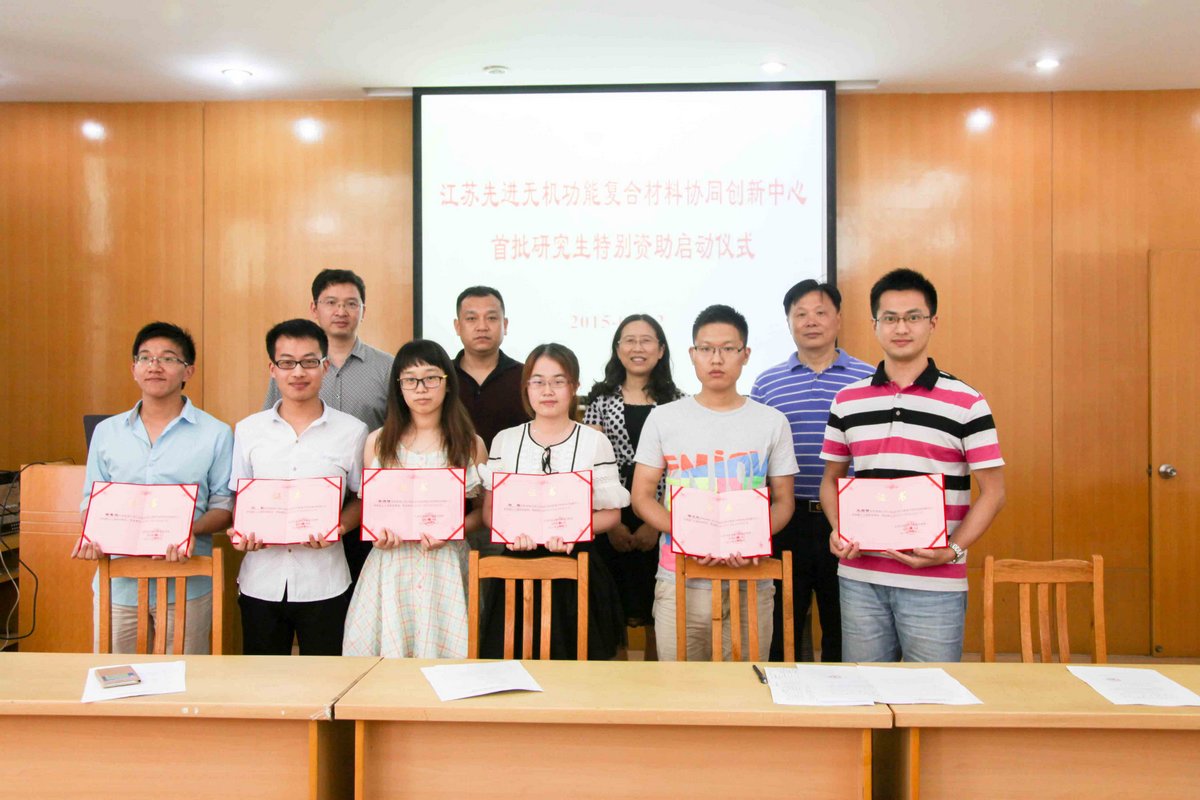 6月12日,江苏先进无机功能复合材料协同创新中心举行了首批研究生特别资助授予仪式。mk体育经理沈晓冬教授,研究生院副经理张华教授,mk体育副经理王廷尉教授出席。授予仪式由mk体育副经理陆春华教授主持。 mk体育副经理王庭慰教授宣读《关于确定首批研究生特别资助名单的通知》。根据《江苏无机功能复合材料协同创新中心研究生特别资助管理办法》,经研究生个人申请,专家小组评审,确定胡松、绍高峰、陆依为博士A类资助;杨玮民、黄宝玉、丁玉婕、万维、黄亨明、刘晓霞为博士B类资助;刘泉、王国雨为硕士A类资助;黄惠洪、金诗琪、田露、邹文杰为硕士B类资助。希望受资助的同学能再接再厉,为中心的建设添砖加瓦。 研究生院副经理张华教授在致辞中祝贺获得资助的研究生。希望他们能珍惜获得资助的机会,在今后的学习过程中善于观察问题和勤于思考,取得更多创新成果。 最后mk体育沈晓冬经理发表热情洋溢的讲话。沈经理首先肯定了获得资助研究生前期取得的成果,祝贺15位同学获得首批研究生特别资助。同时也对获得资助的研究社生寄予厚望:一是希望获得资助的同学能在全院研究生中产生示范作用,把全院研究生的科研氛围能带动起来;二是希望获得资助的研究生实事求是,不要急功近利,全身心投入科研研究,多参加学术交流,为学科的发展做出贡献。