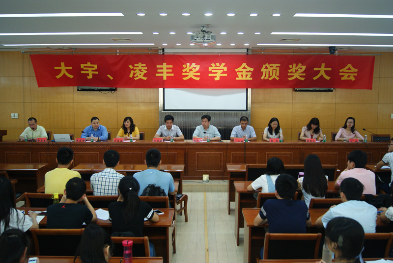 最后,广东凌丰集团有限公司董事长、总裁叶灿雄先生给同学们做了报告。颁奖仪式结束后,与会嘉宾和领导,以及获奖同学在逸夫图书馆门口合影留念。