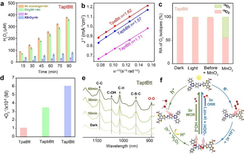 为此,mkmksportmk体育吴晓栋博士联合湖南大学环境公司王侯副教授课题组、新加坡南洋理工大学赵彦利教授课题组,理论设计和合成了具有空间分离的氧化还原中心的苯并三噻吩基共价有机骨架。通过实验现象和理论模型计算验证,提出周期性共价有机网络的双供体-受体结构,即具有电荷同向转移和能差的极性连接键和供体-受体功能基元的“原子点-分子区”双结构。该特异性结构能有效调控光激发电荷在骨架内转移,抑制载流子的复合,在固-液界面反应活性位点集中于亚胺键附近的电子受体周围区域,该区域还能调节毗邻碳原子的电荷分布,优化中间体结合强度。该研究团队所提出的COF材料在水、空气和无牺牲剂条件下双氧水产率高达1407 μmol g-1 h-1,为实现更高性能的双氧水生产技术提供拱了全新的思路和途径,有望在近期取得重大突破。湖南大学钦陈程博士生、mkmksport吴晓栋博士和湖南大学汤琳教授为共同第一作者,湖南大学王侯副教授、袁兴中教授和新加坡南洋理工大学赵彦利教授为论文通讯作者,湖南大学为论文第一单位,mkmksport为论文第二单位。