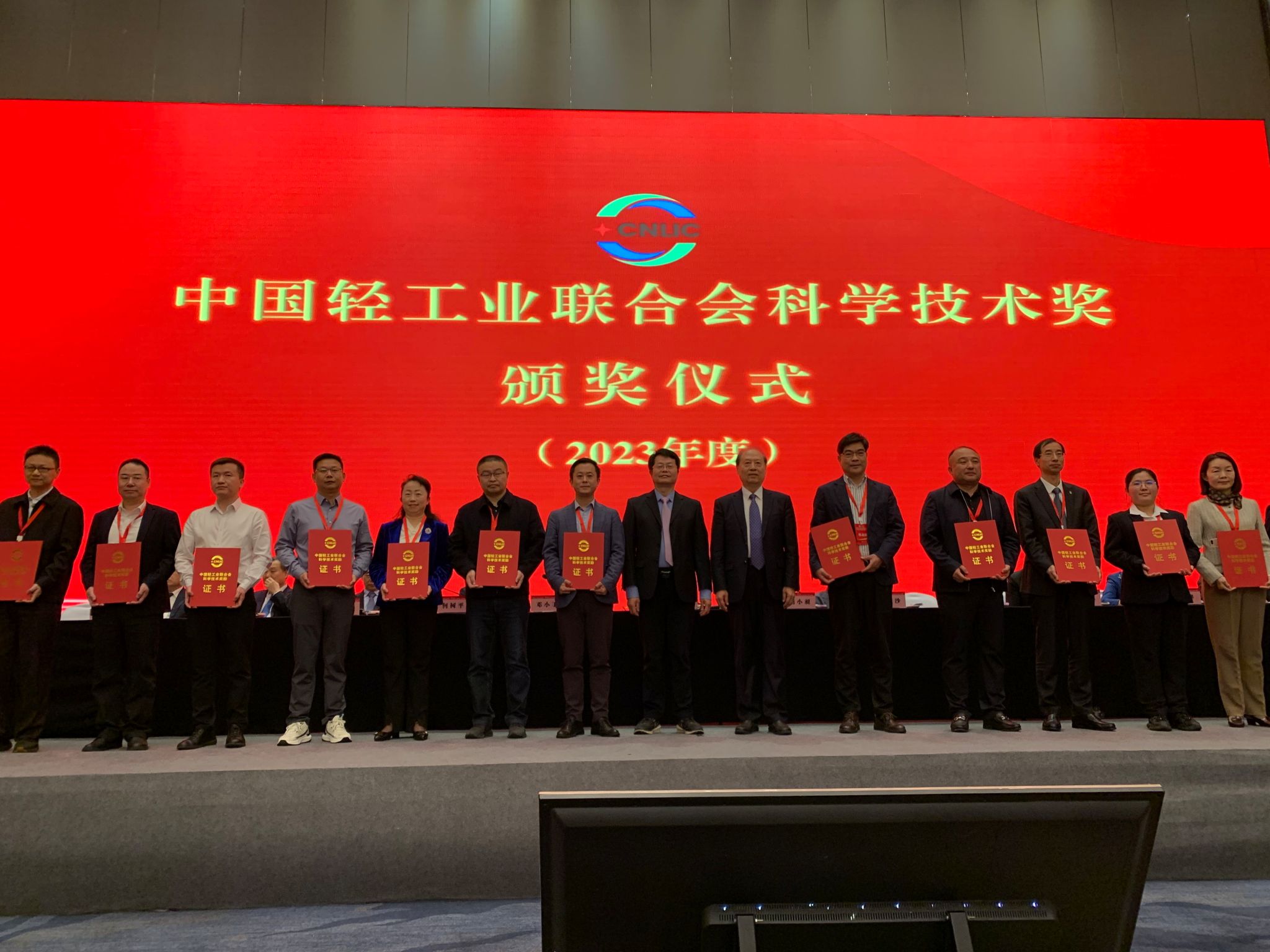 4月8日,2023年度中国轻工业联合会科学技术奖励颁奖活动在四川广元举行。工业和信息化部消费品工业司副司长李强等出席大会,并为获奖代表颁奖。本次授予2023 年度中国轻工业联合会科学技术奖共191项,其中技术发明奖19项(一等奖5项、二等奖6项、三等奖8项)、科技进步奖172项(一等奖40项、二等奖61项、三等奖71项)。